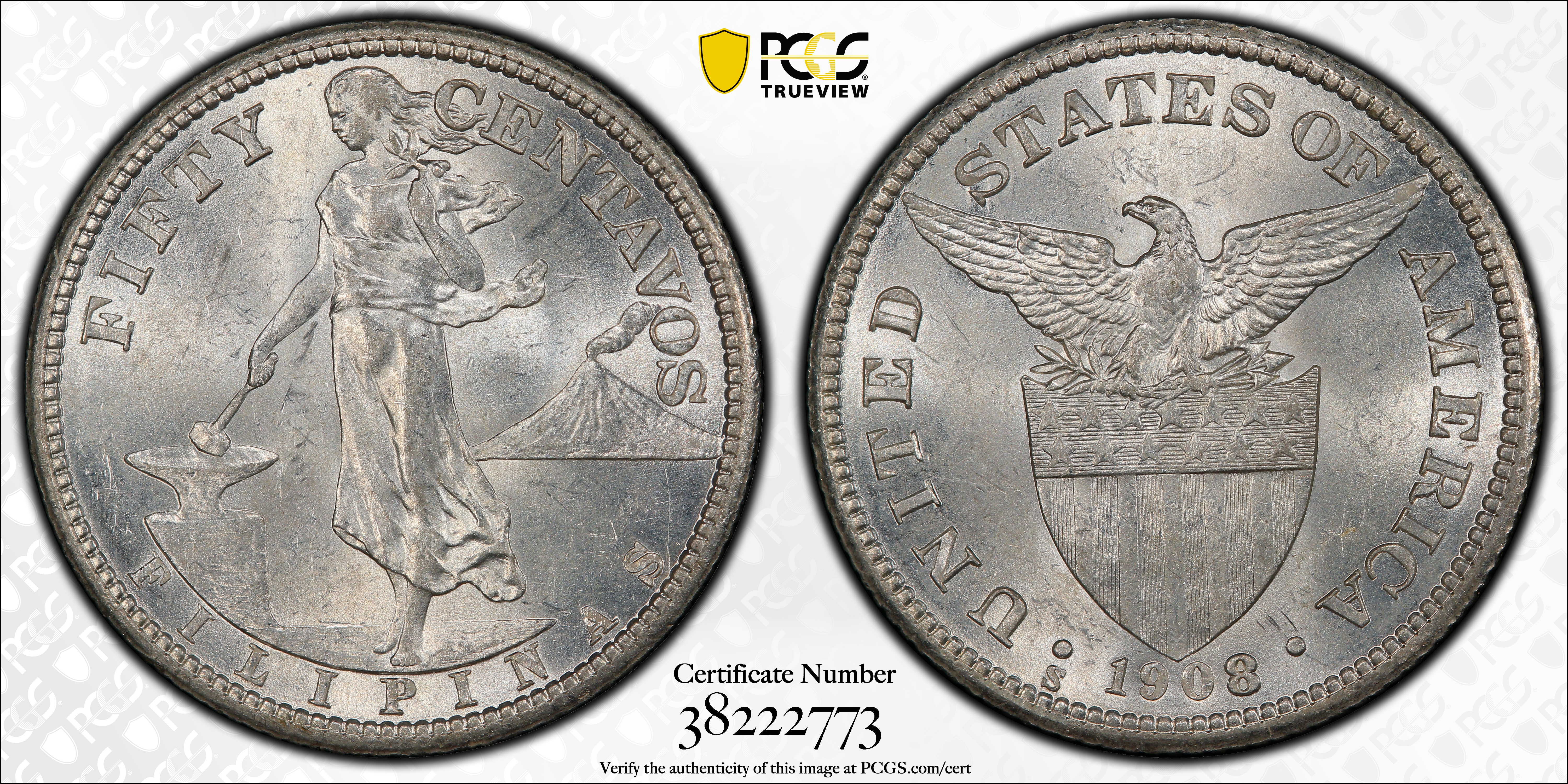 1908-S 50C MS63 Certification #38222773, PCGS #90355