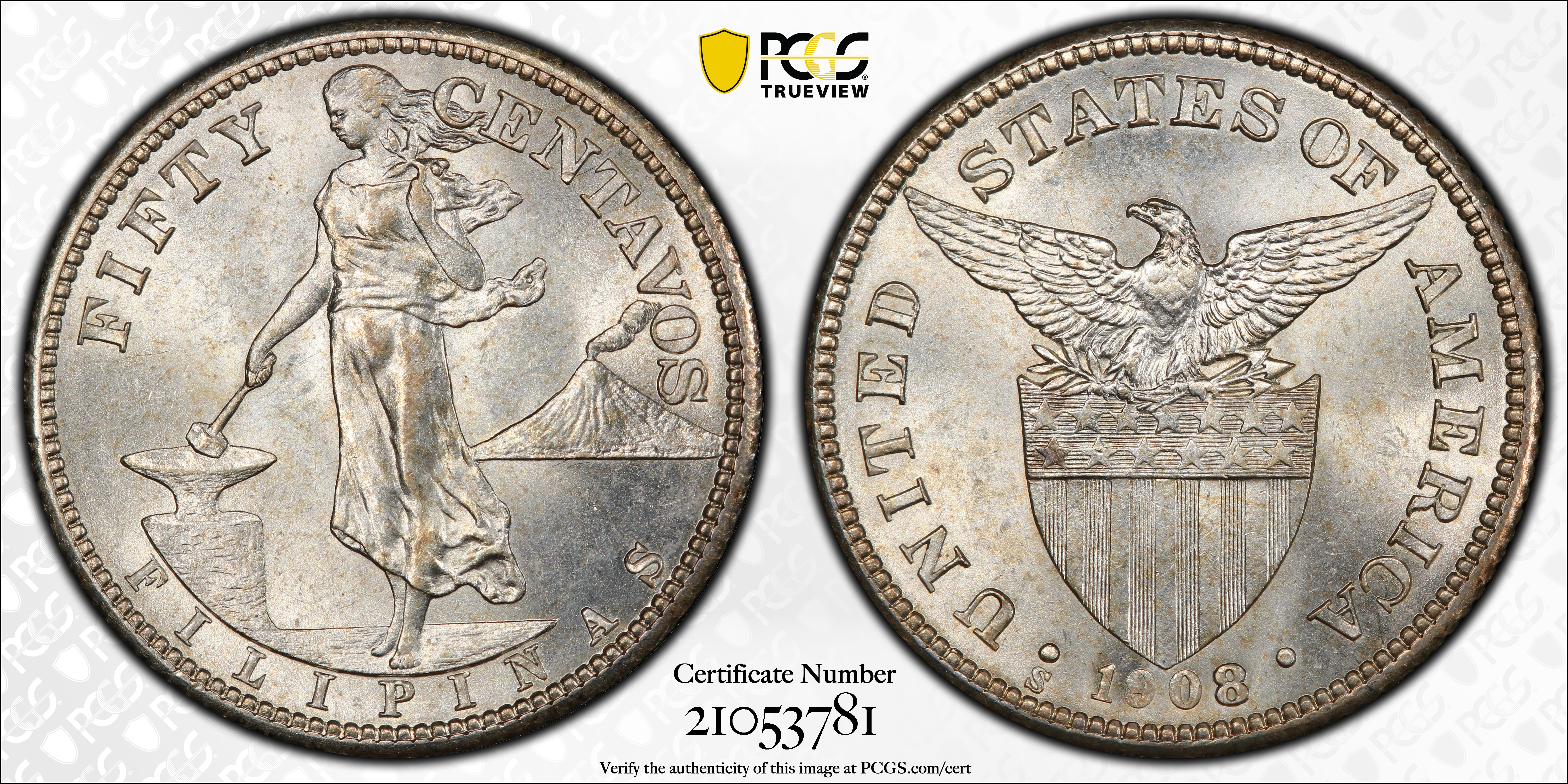 1908-S 50C MS63 Certification #21053781, PCGS #90355