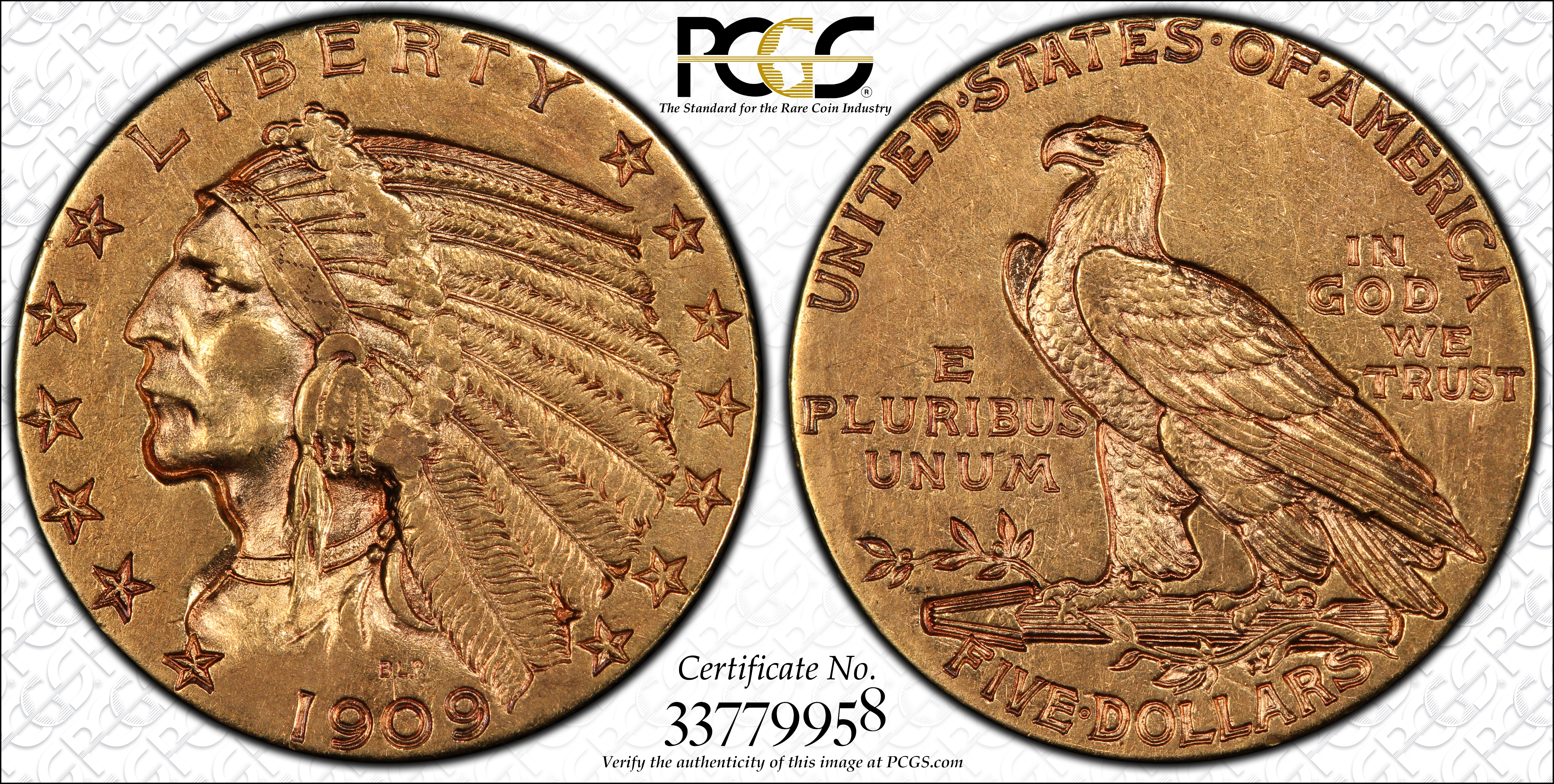 1909 $5 AU50 Certification #33779958, PCGS #8513