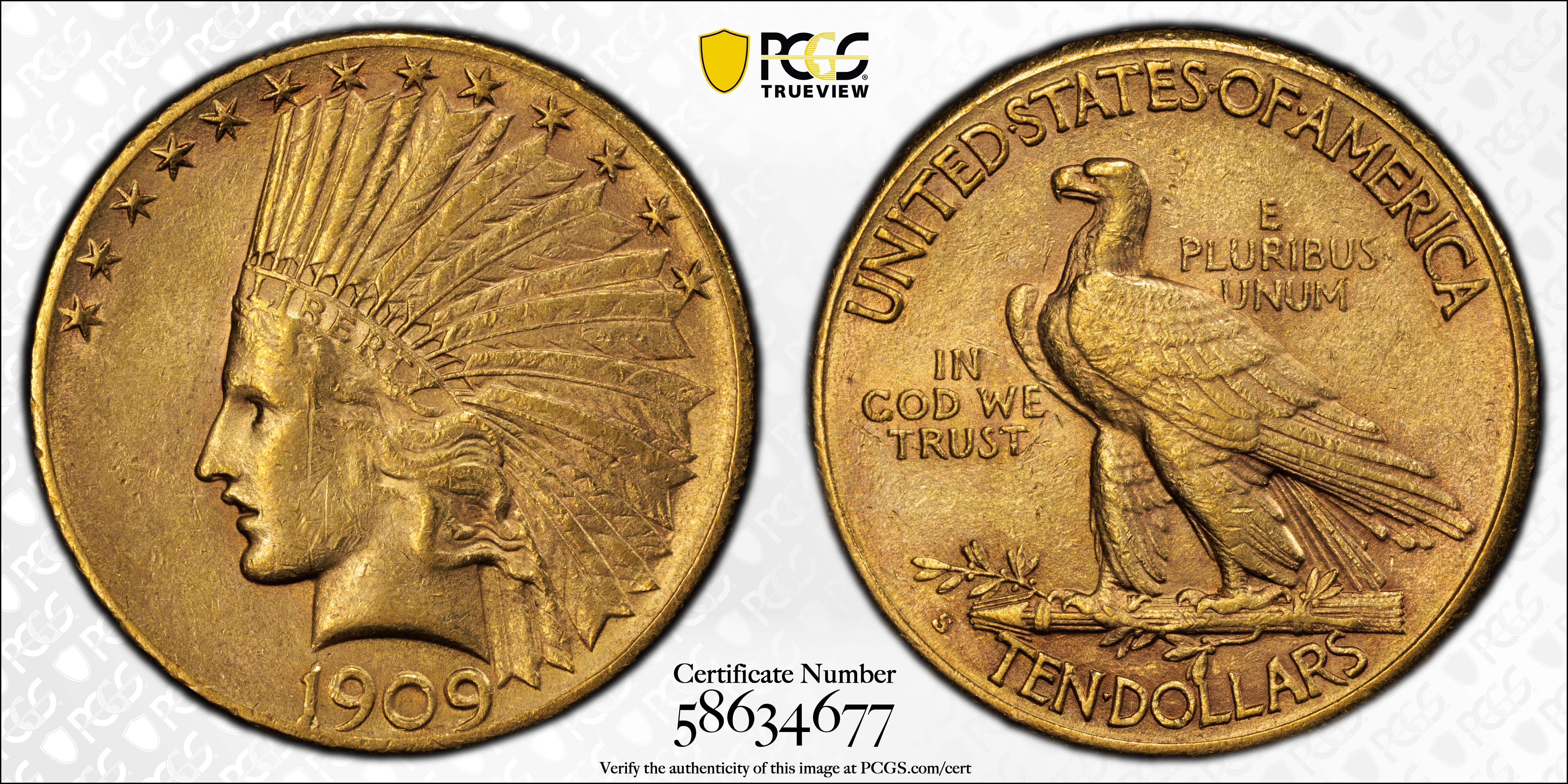1909-S $10 AU55 Certification #58634677, PCGS #8864
