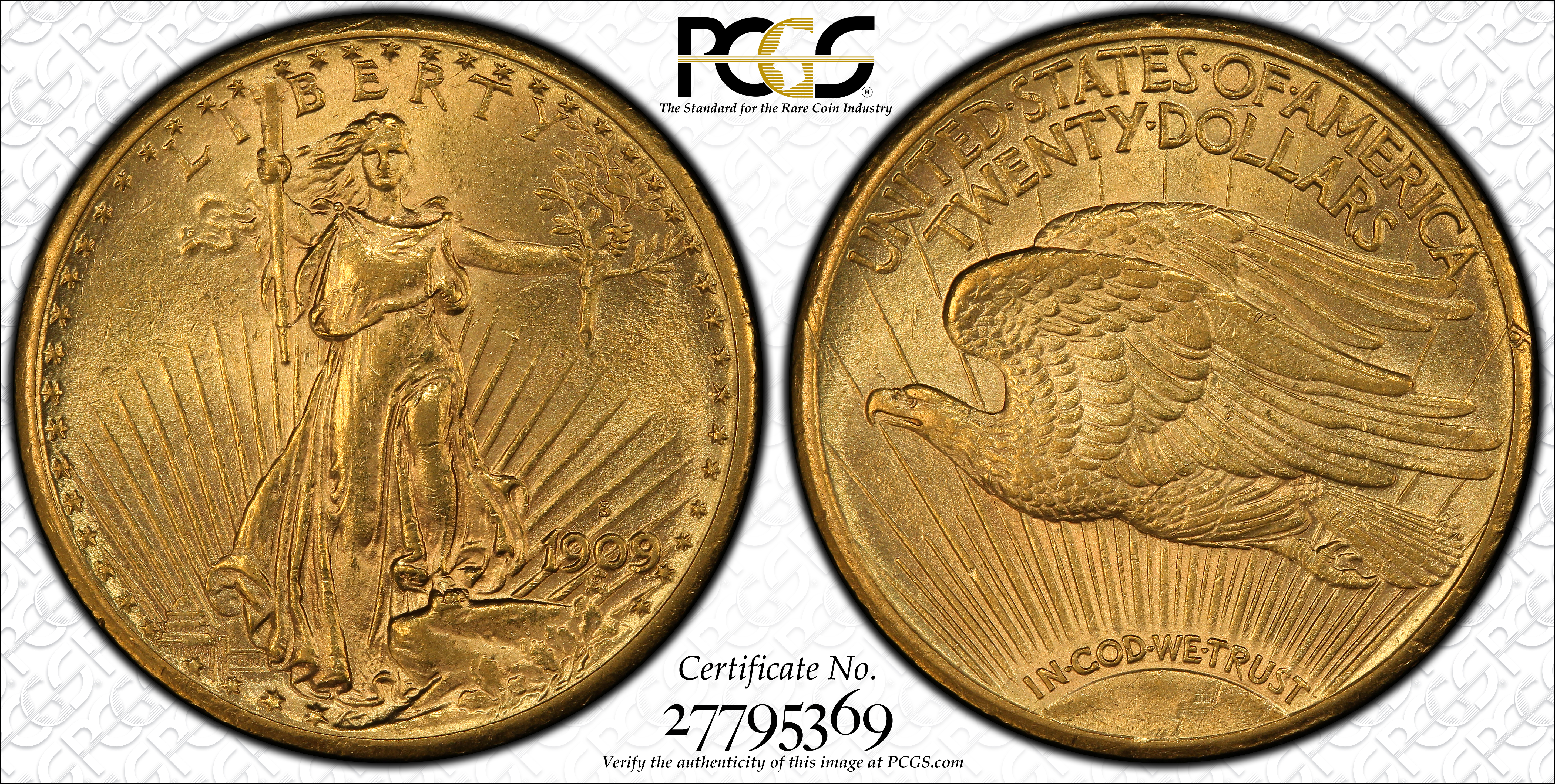 1909-S $20 MS62 Certification #27795369, PCGS #9153