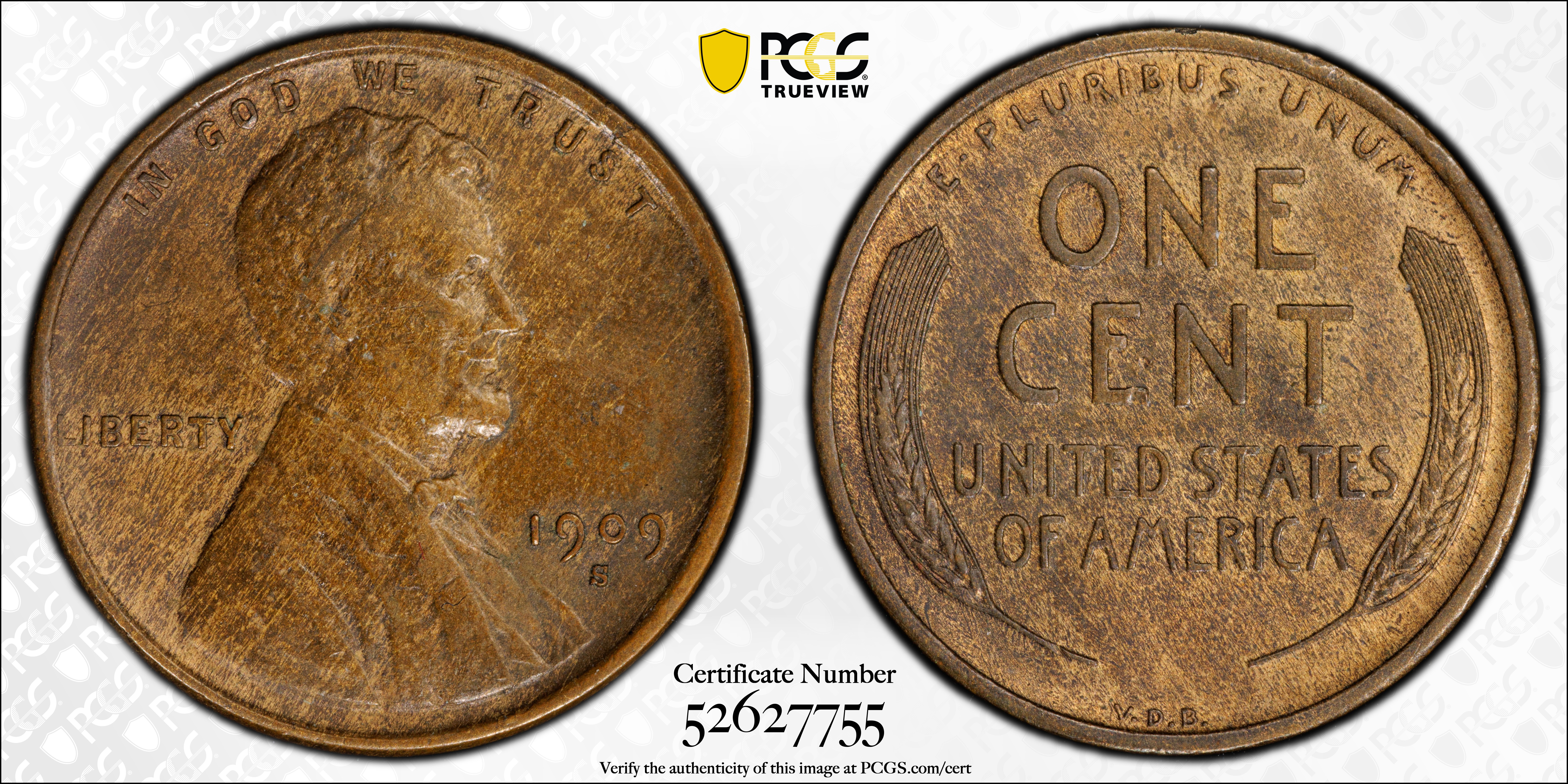 1909-S VDB 1C, BN AU58BN Certification #52627755, PCGS #2426