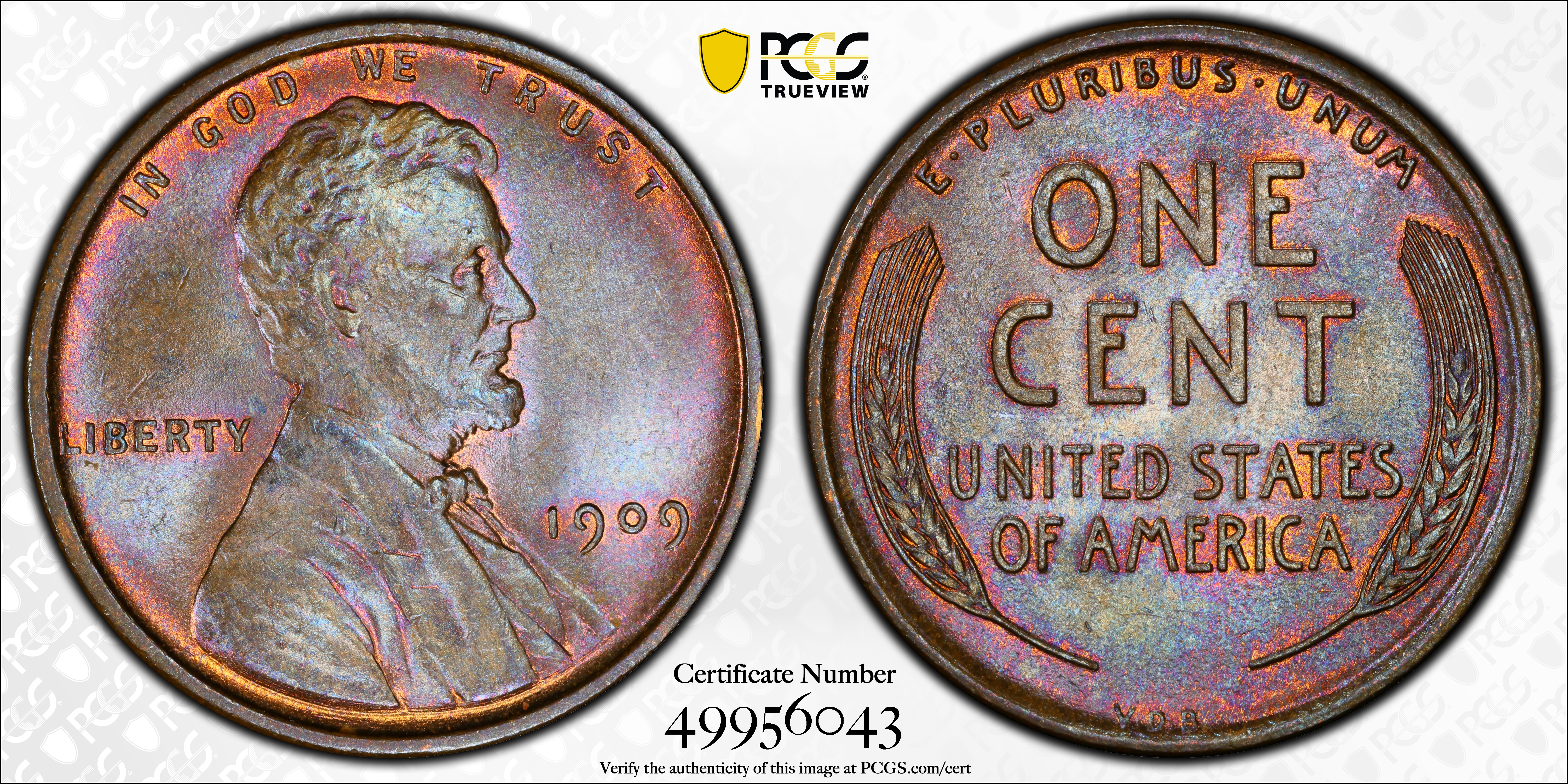 1909 VDB 1C, BN MS65BN Certification #49956043, PCGS #2423