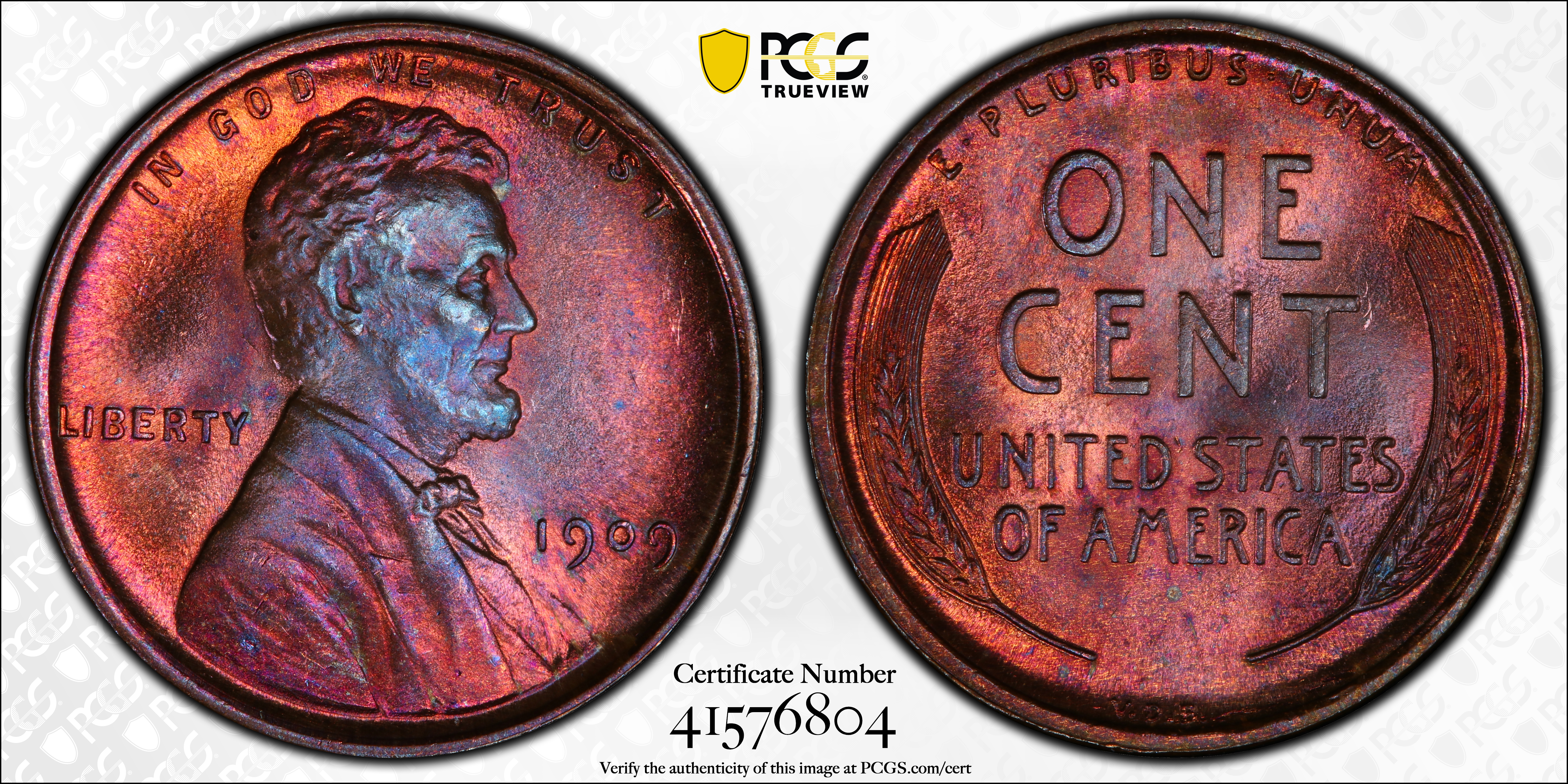 1909 VDB 1C, RB MS66RB Certification #41576804, PCGS #2424