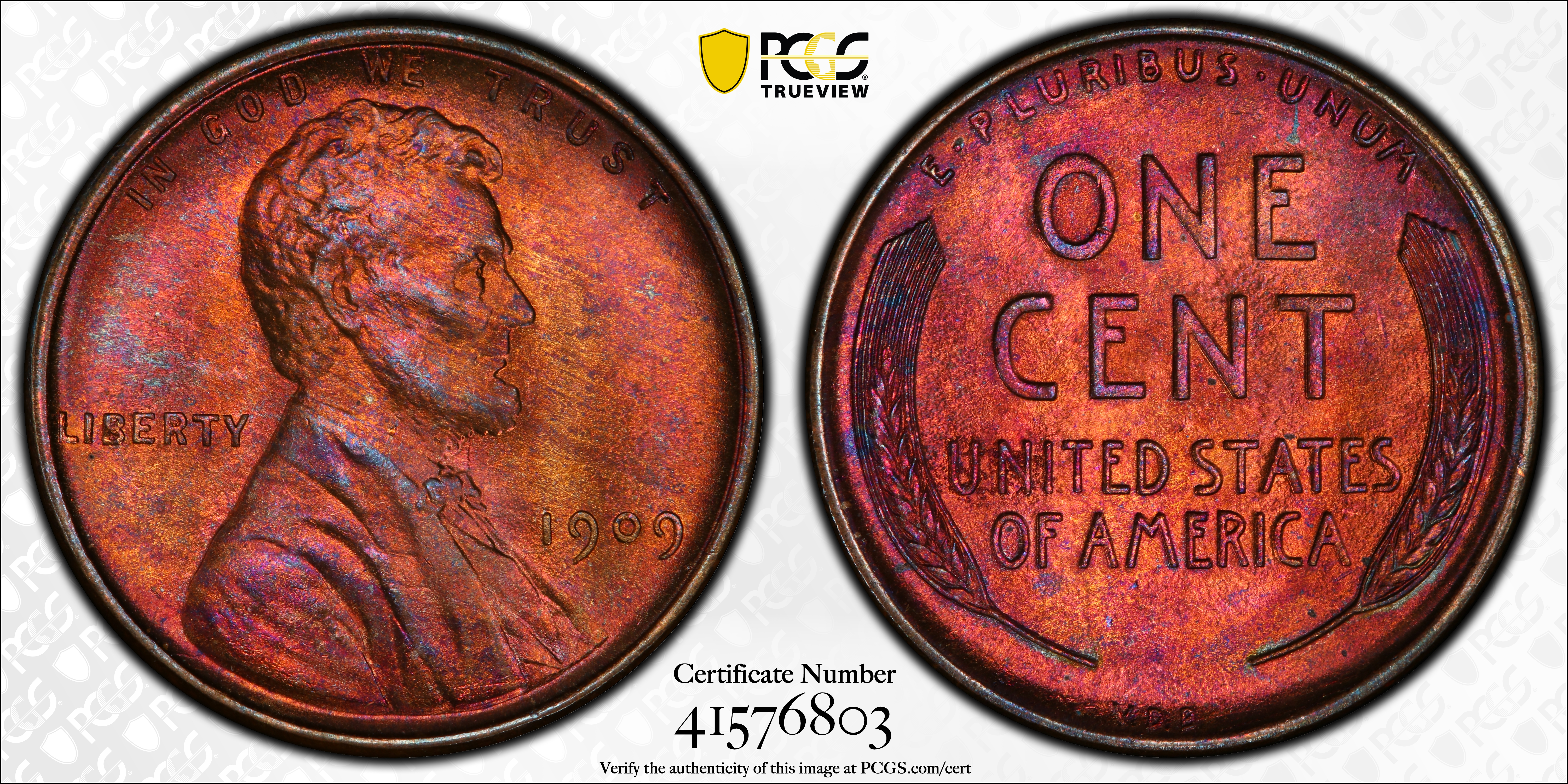 1909 VDB 1C, RB MS66RB Certification #41576803, PCGS #2424