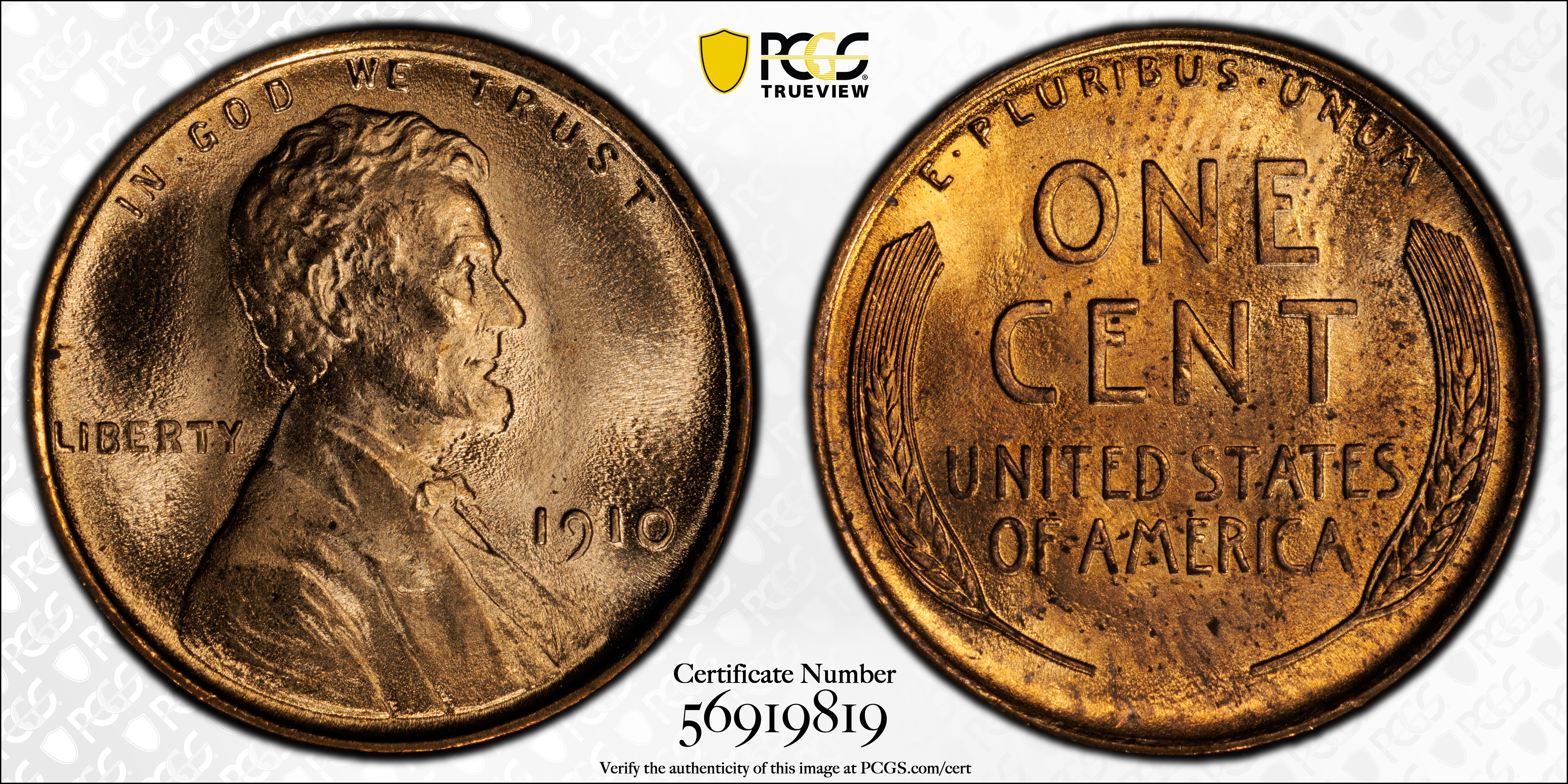 1910 1C, RD MS65RD Certification #56919819, PCGS #2437
