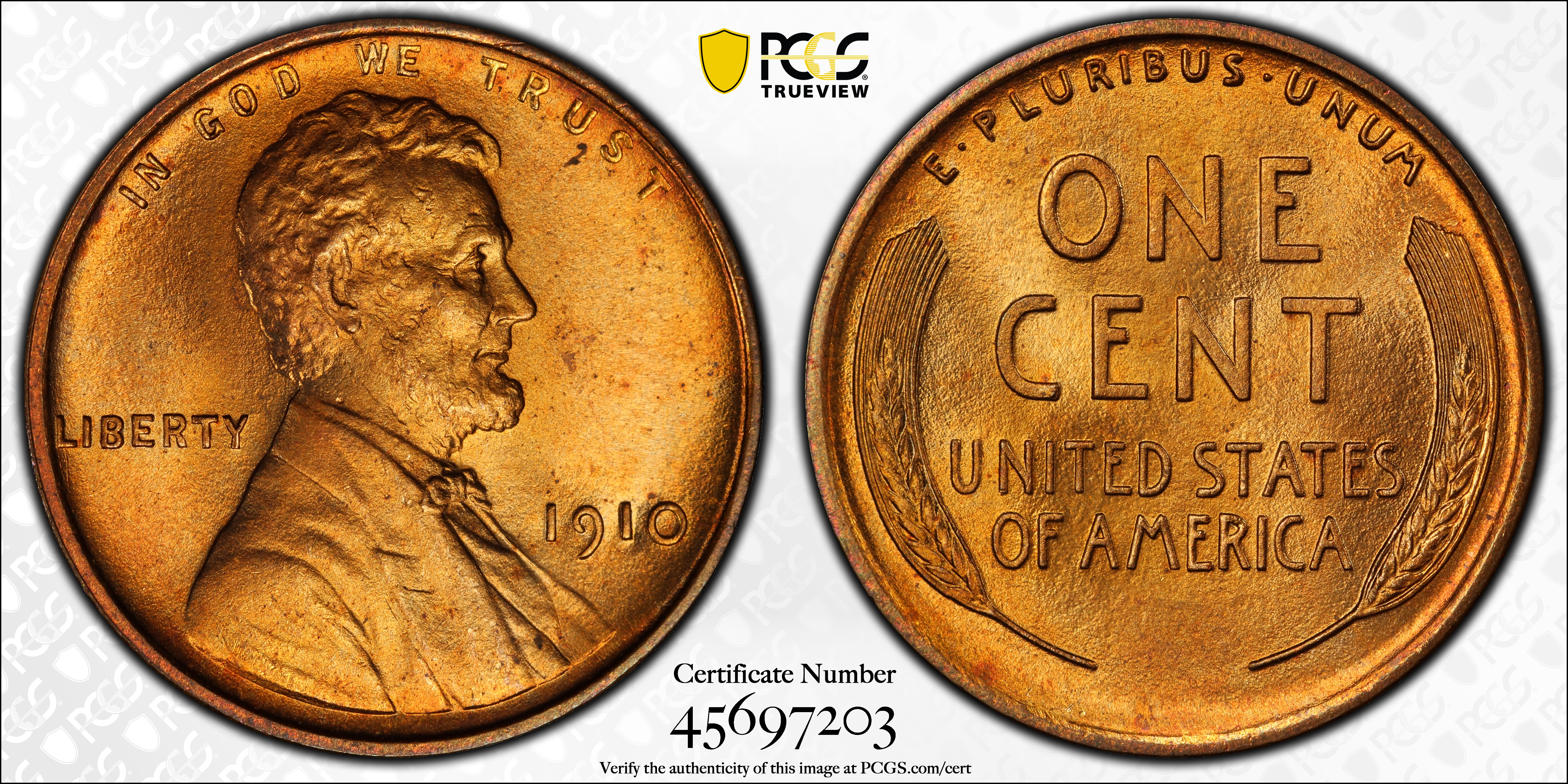 1910 1C, RD MS67RD Certification #45697203, PCGS #2437