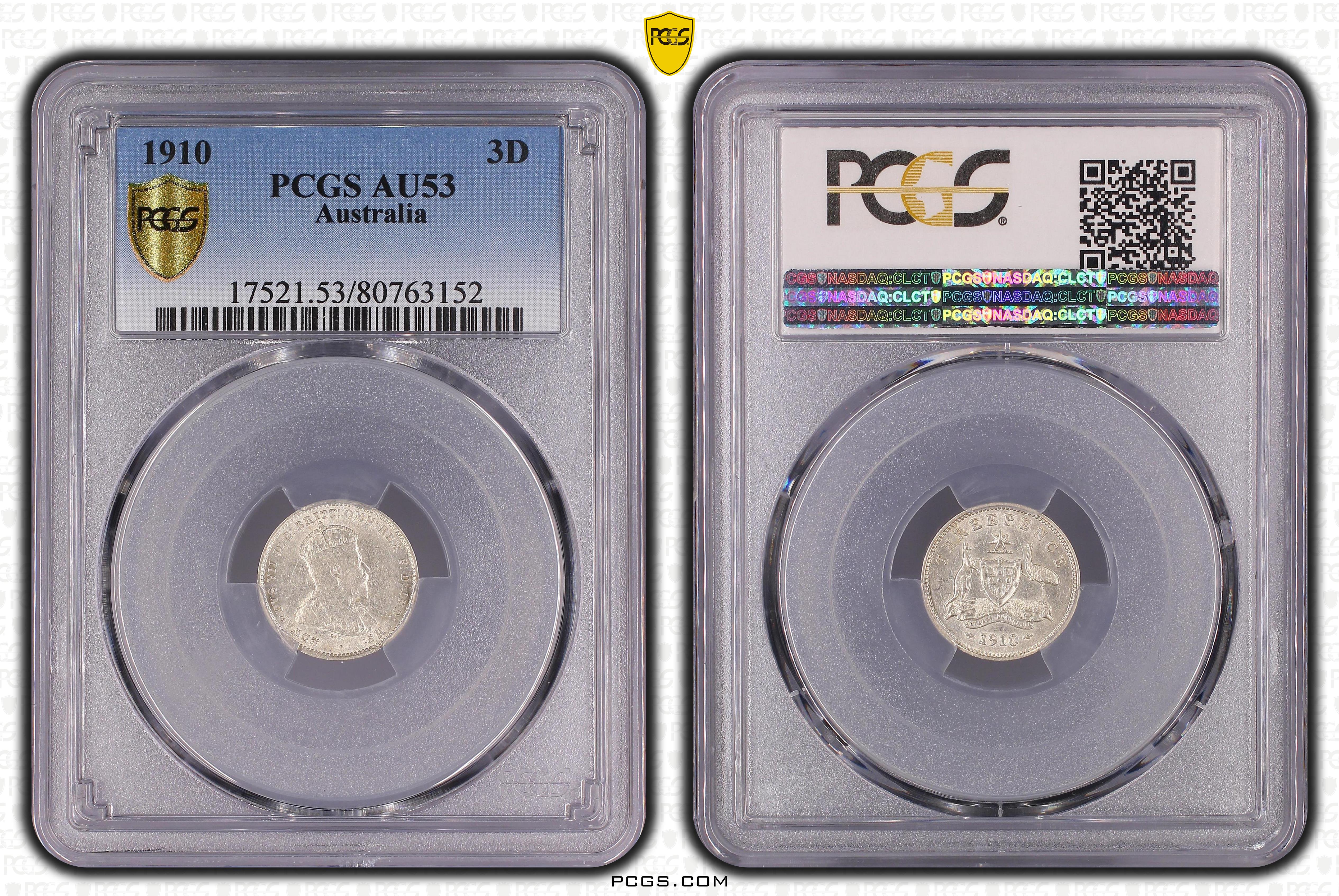 1910 Australia Threepence 3D PCGS GRADED - AU53