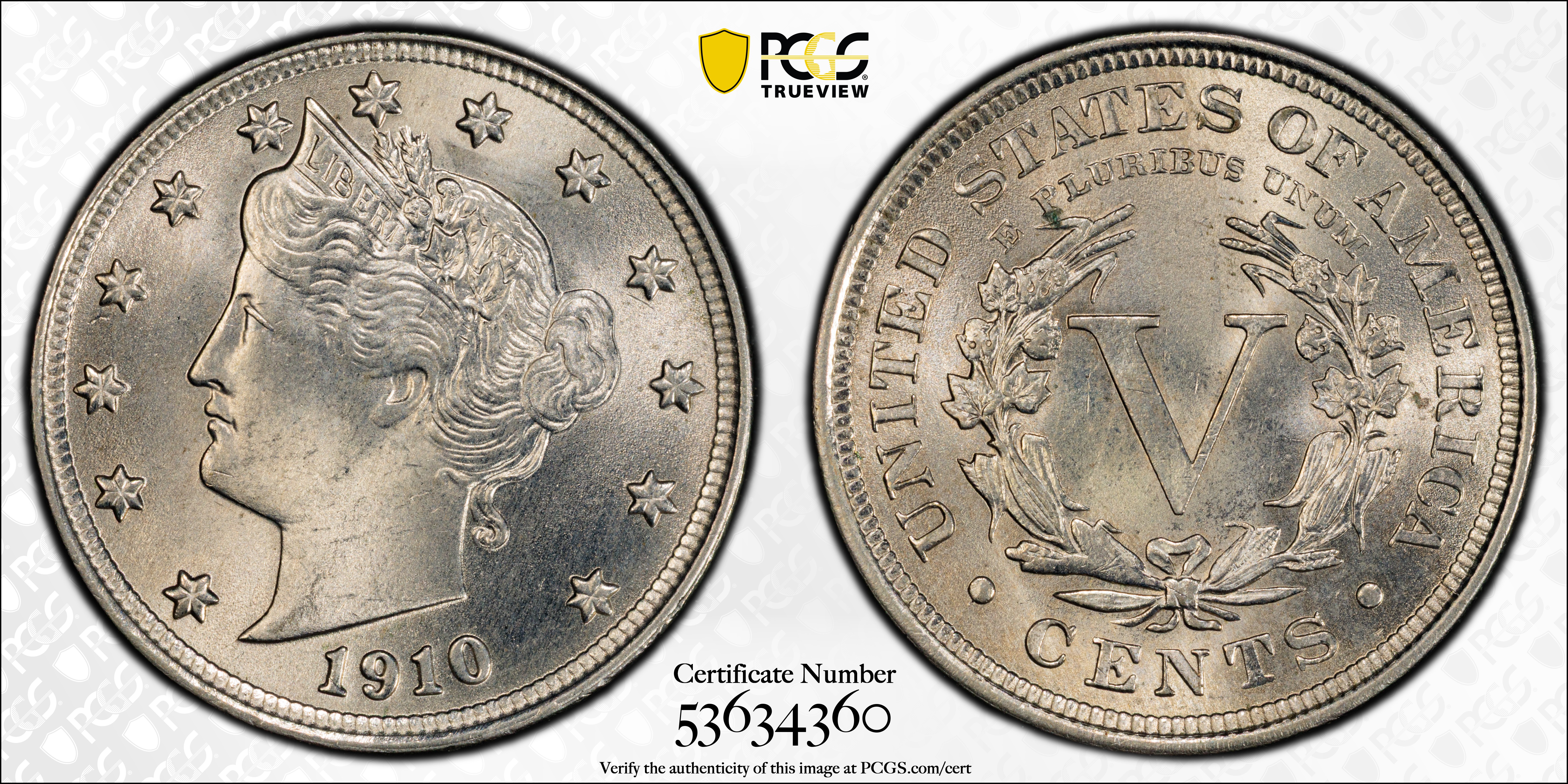 1910 5C MS65 Certification #53634360, PCGS #3871