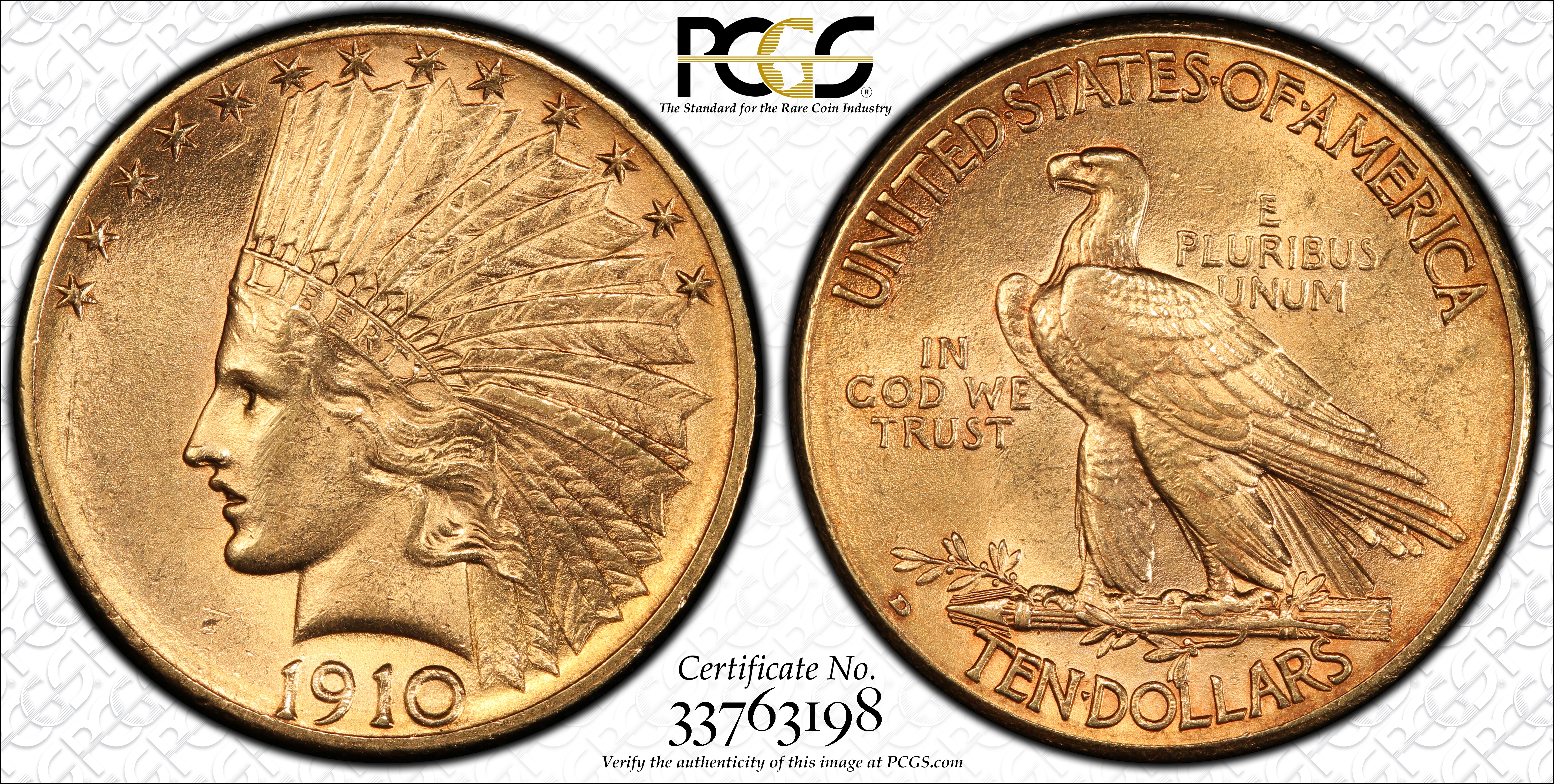 1910-D $10 AU58 Certification #33763198, PCGS #8866