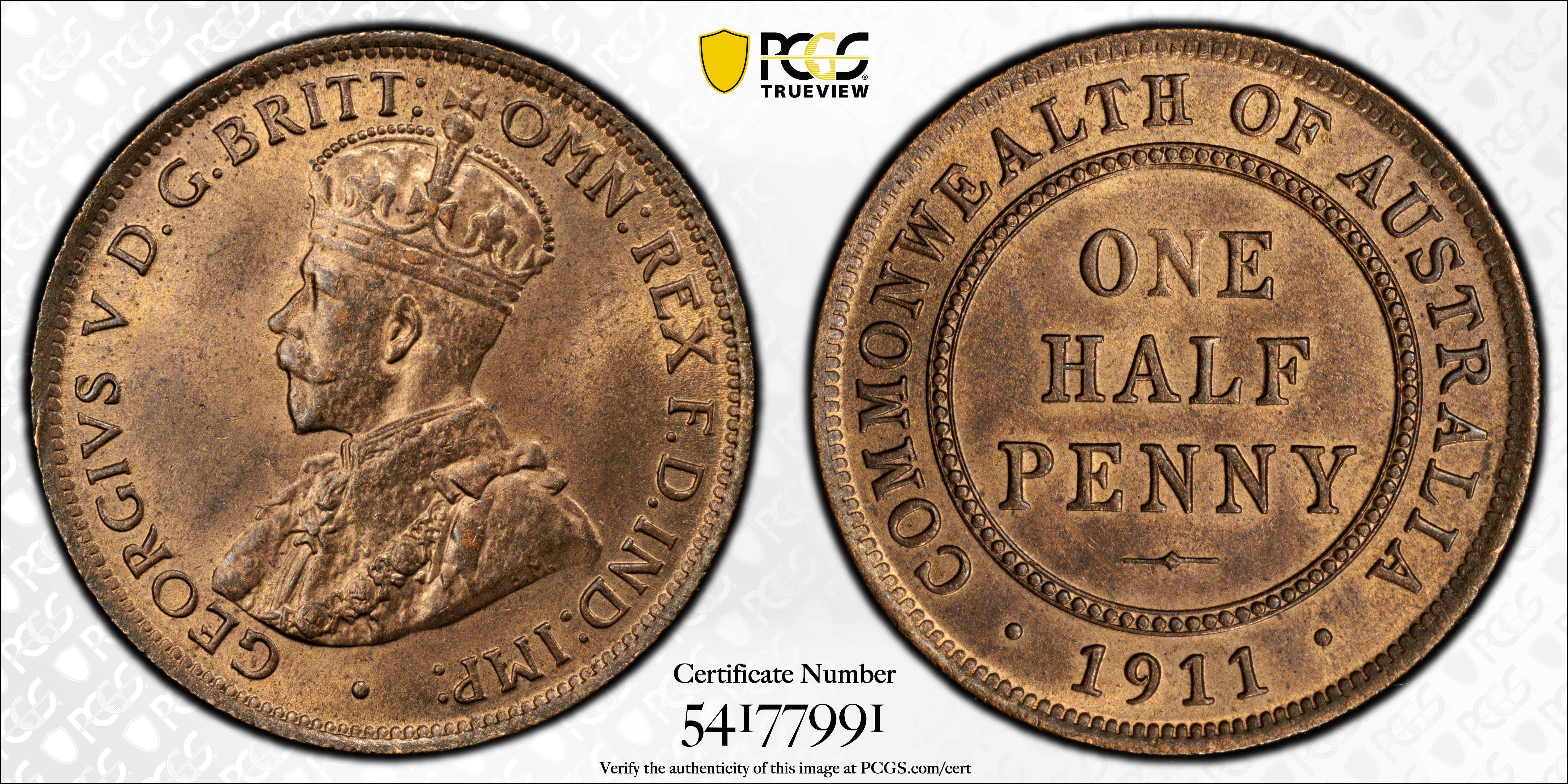 1911 1/2D, RB MS64RB Certification #54177991, PCGS #143619
