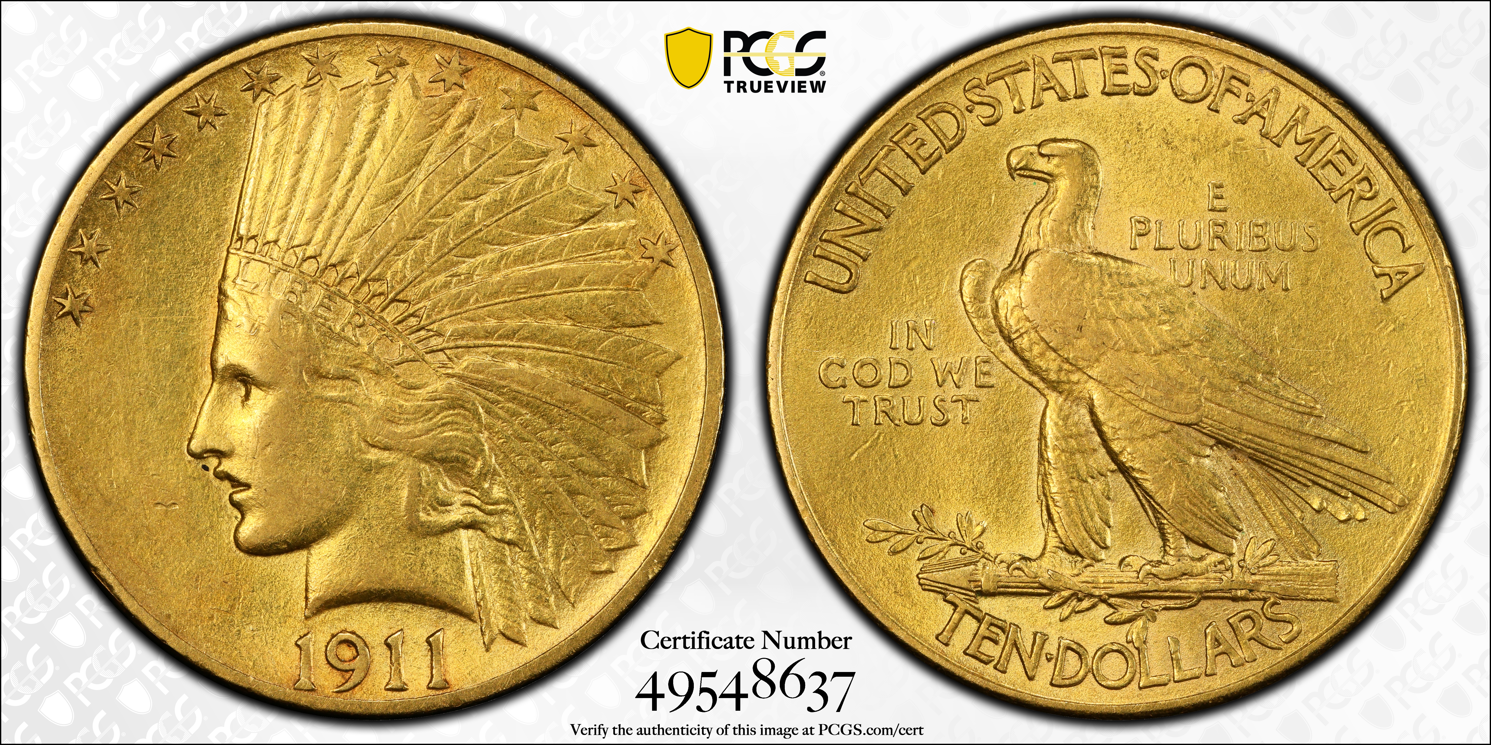 1911 $10 AU50 Certification #49548637, PCGS #8868