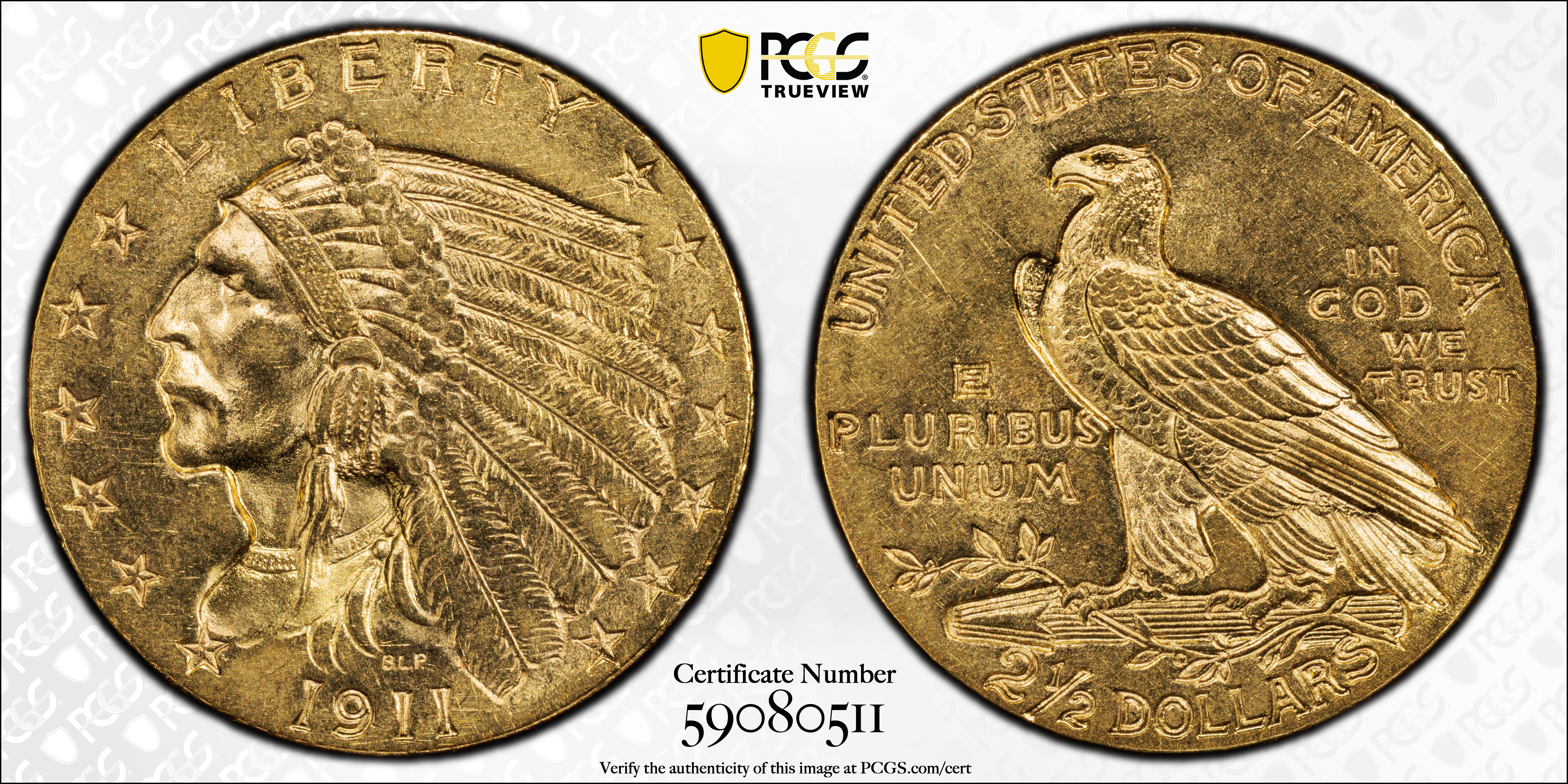 1911 $2.50 MS64 Certification #59080511, PCGS #7942