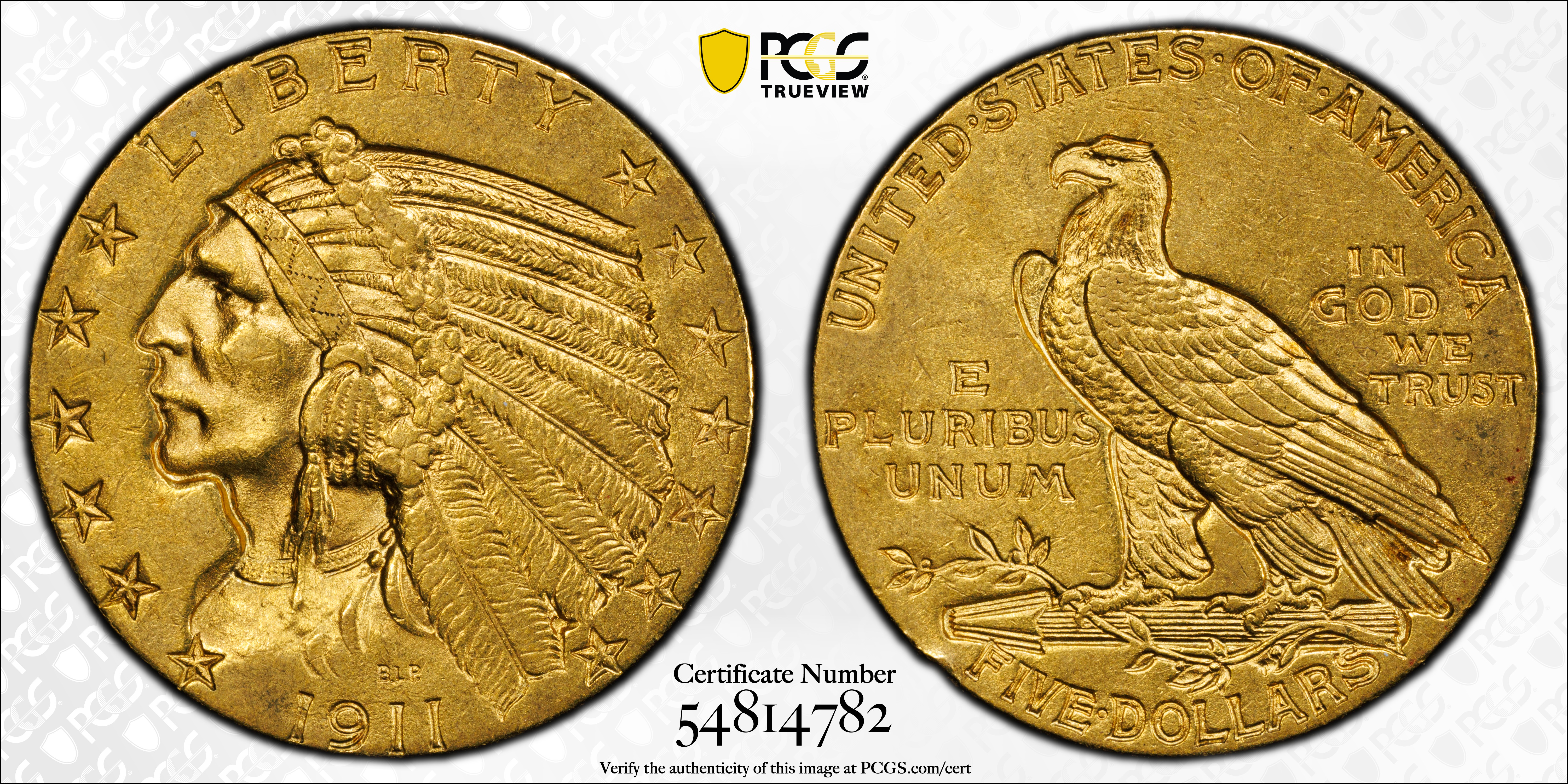 1911 $5 MS61 Certification #54814782, PCGS #8520