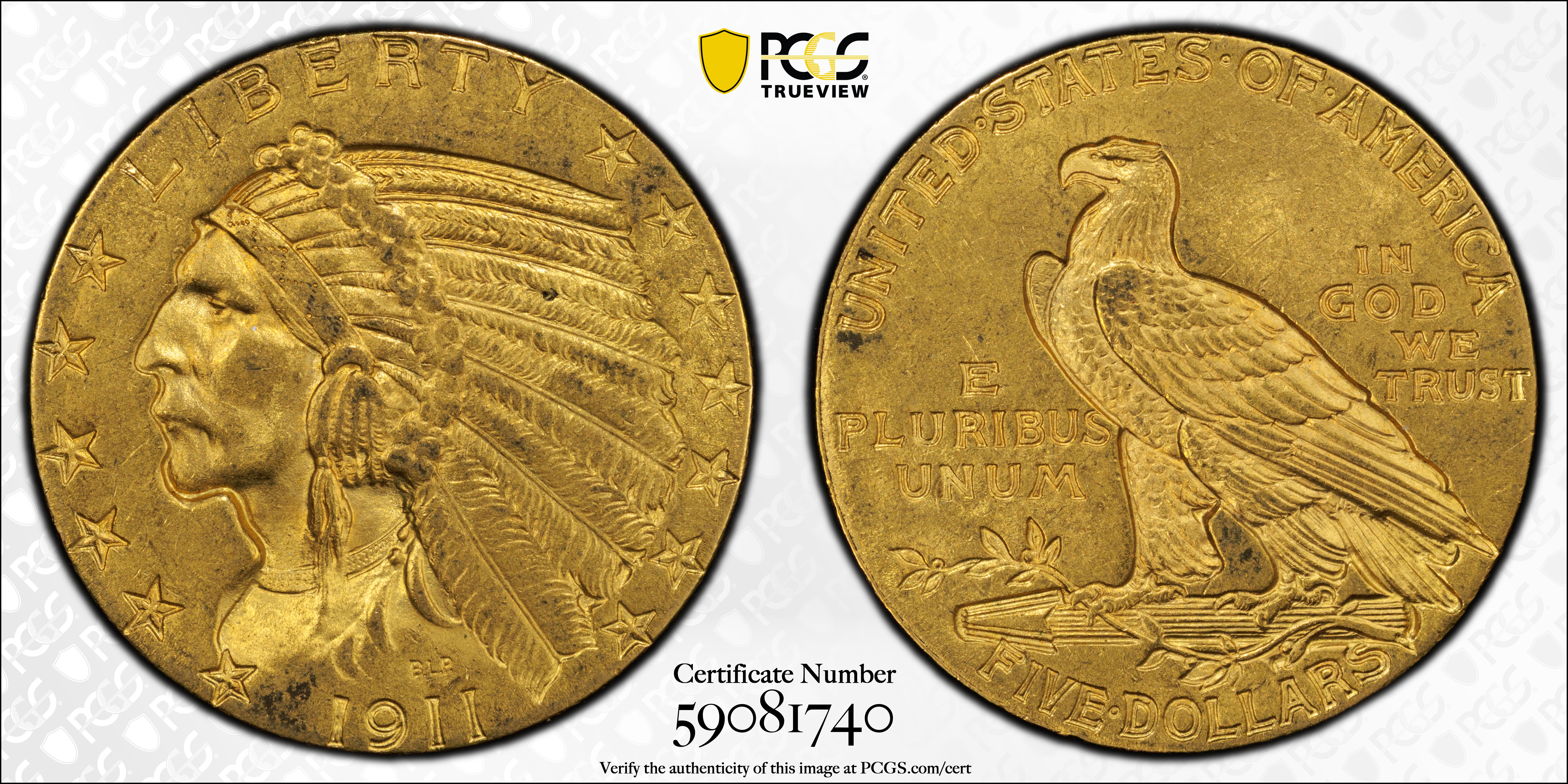 1911 $5 MS64 Certification #59081740, PCGS #8520