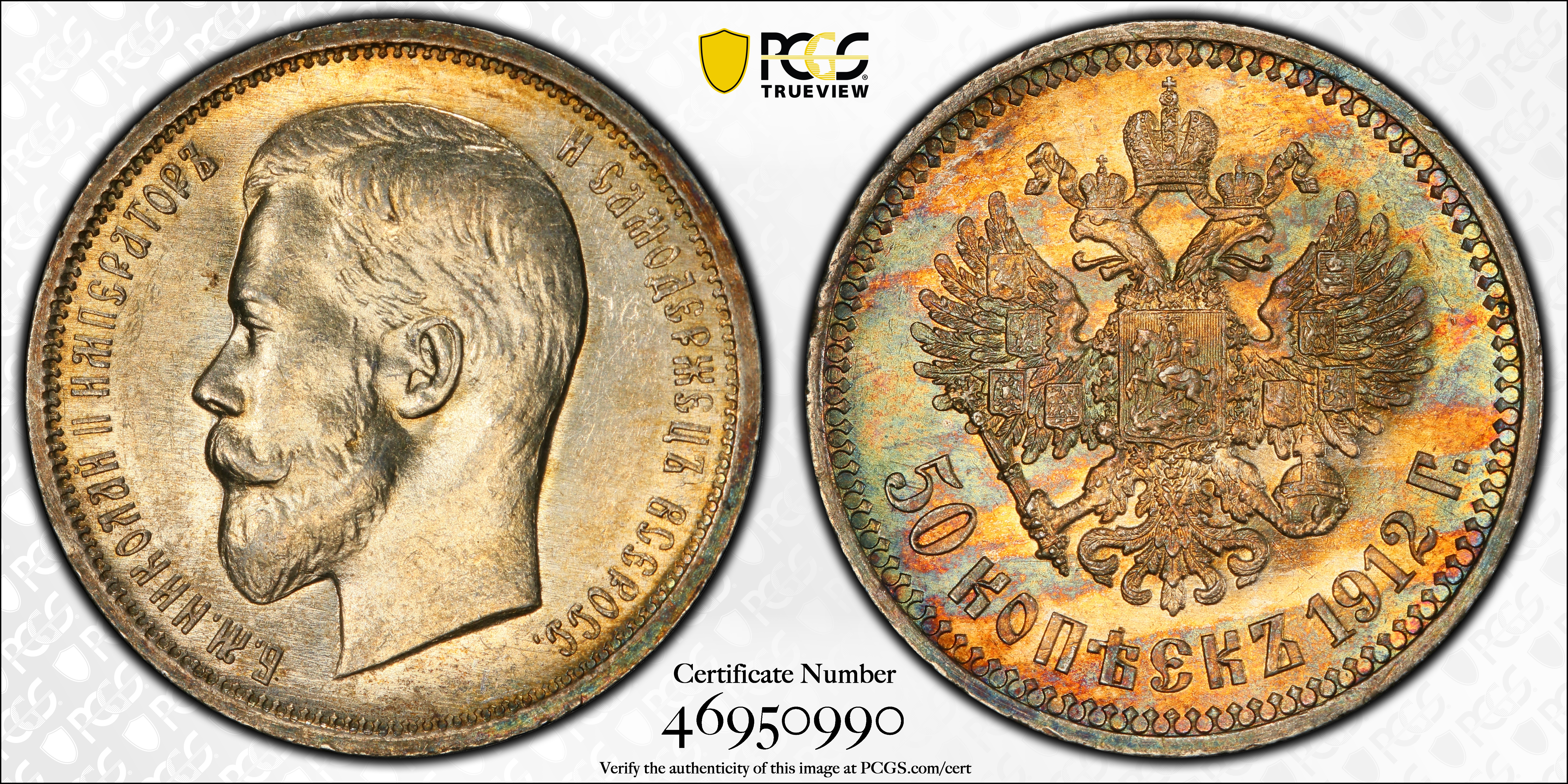 1912 ЭБ 50 Kop Bit-91 MS61 Certification #46950990, PCGS #925607