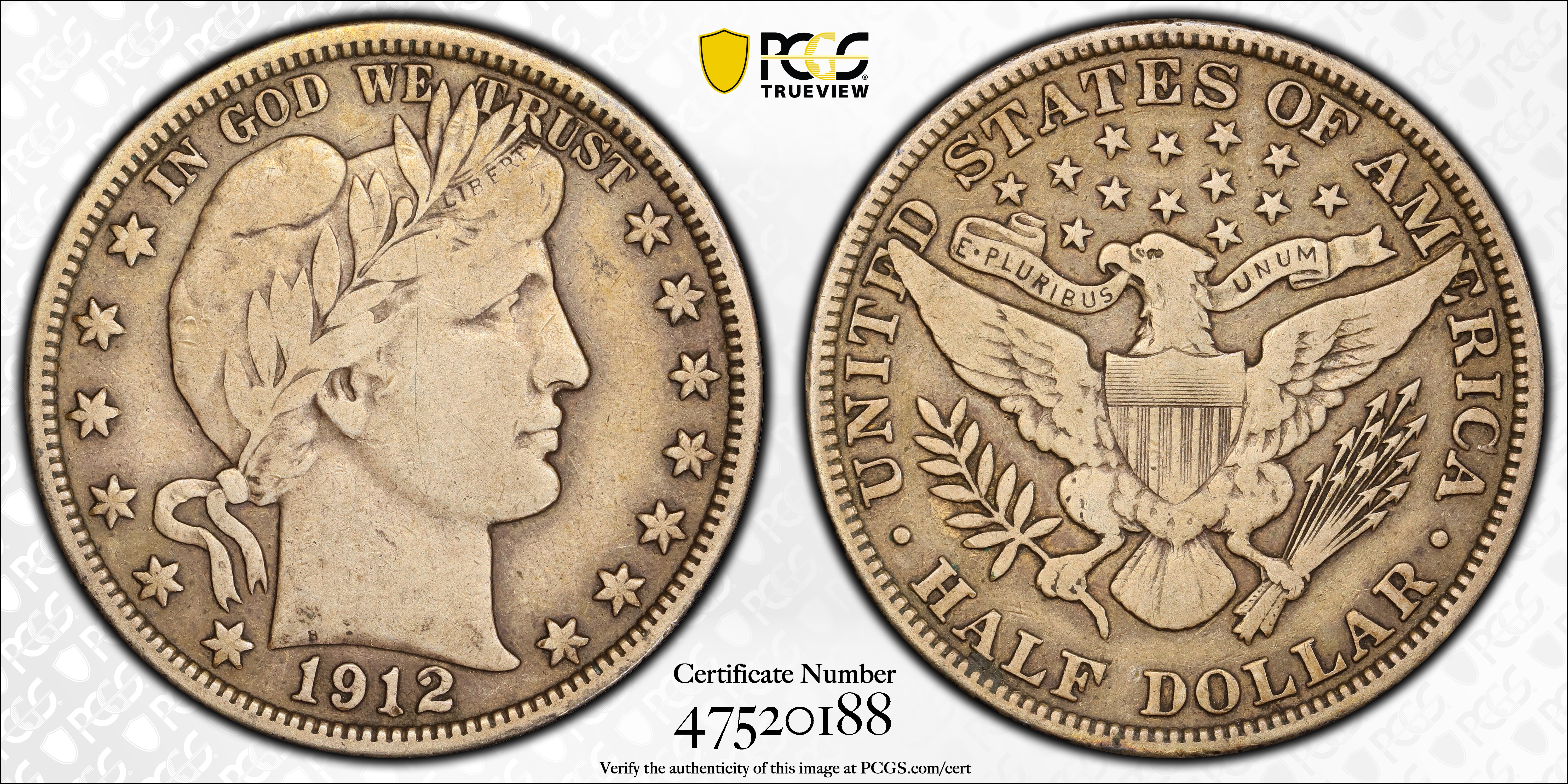 1912 50C VF20 Certification #47520188, PCGS #6524