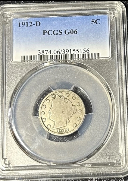 1912-D 5C G6 Certification #39155156, PCGS #3874