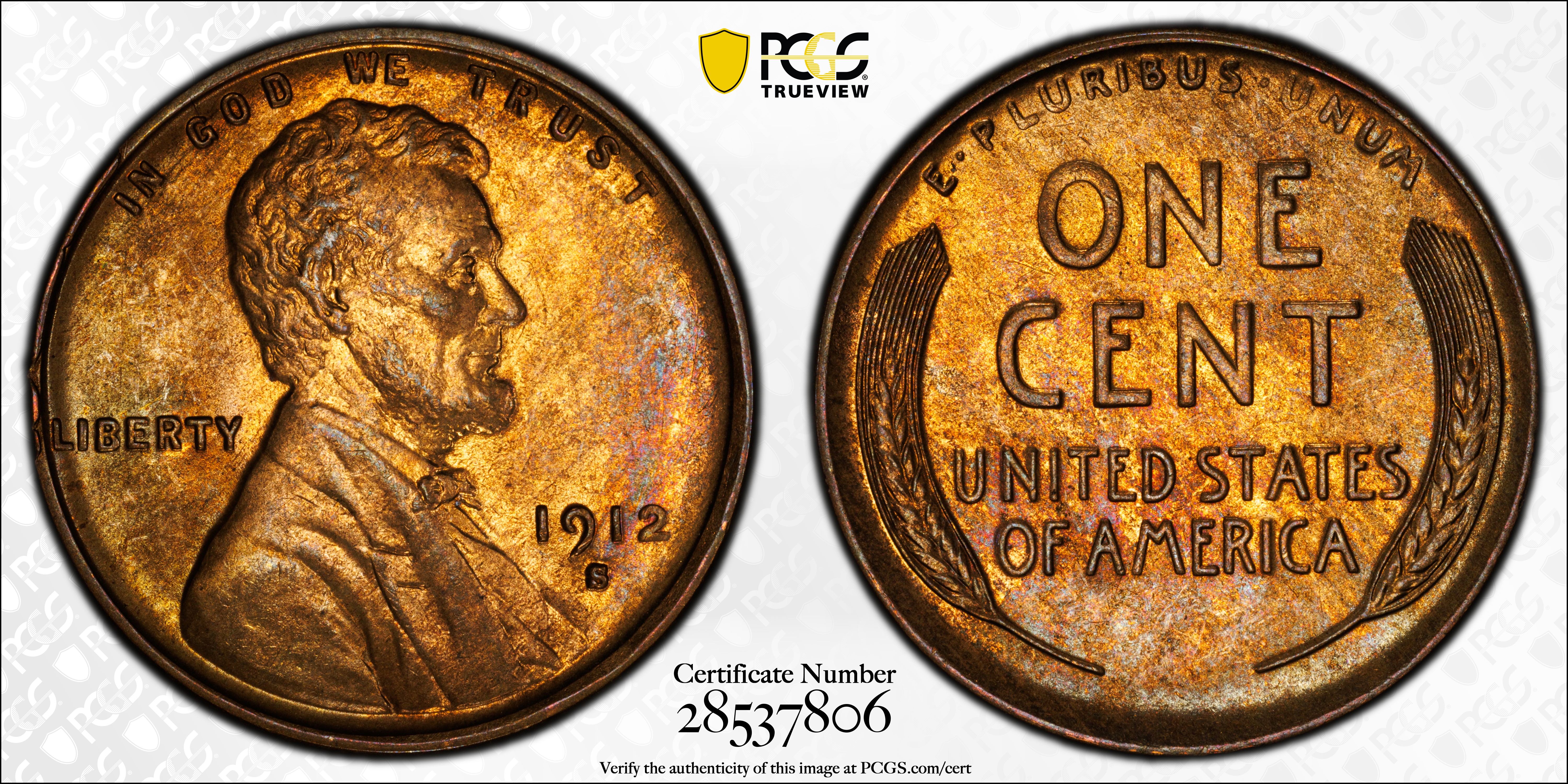1912-S 1C, RB MS64RB Certification #28537806, PCGS #2457