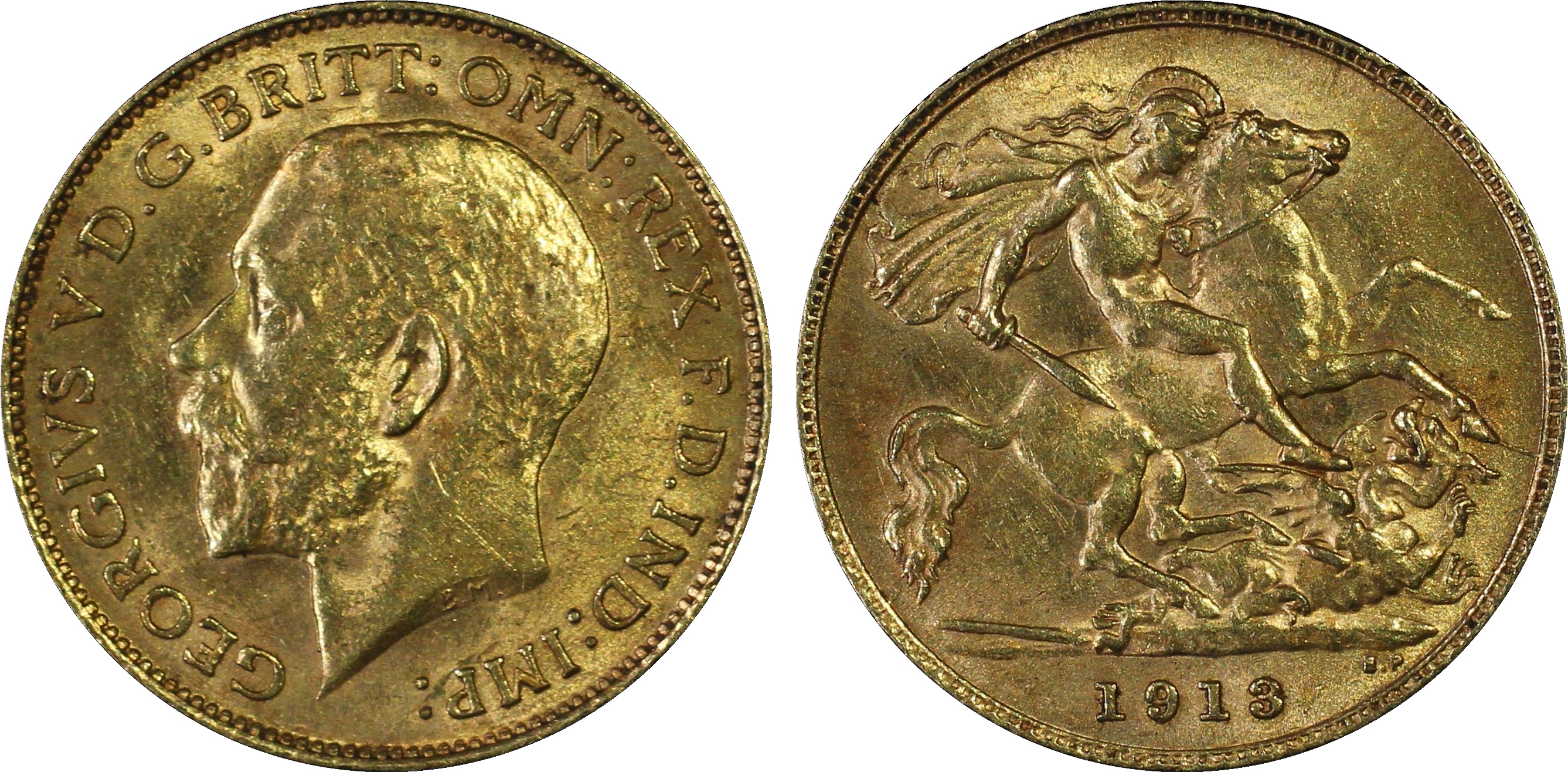 1913 1/2 Sov S-4006 MS62 Certification #29938818, PCGS #206792
