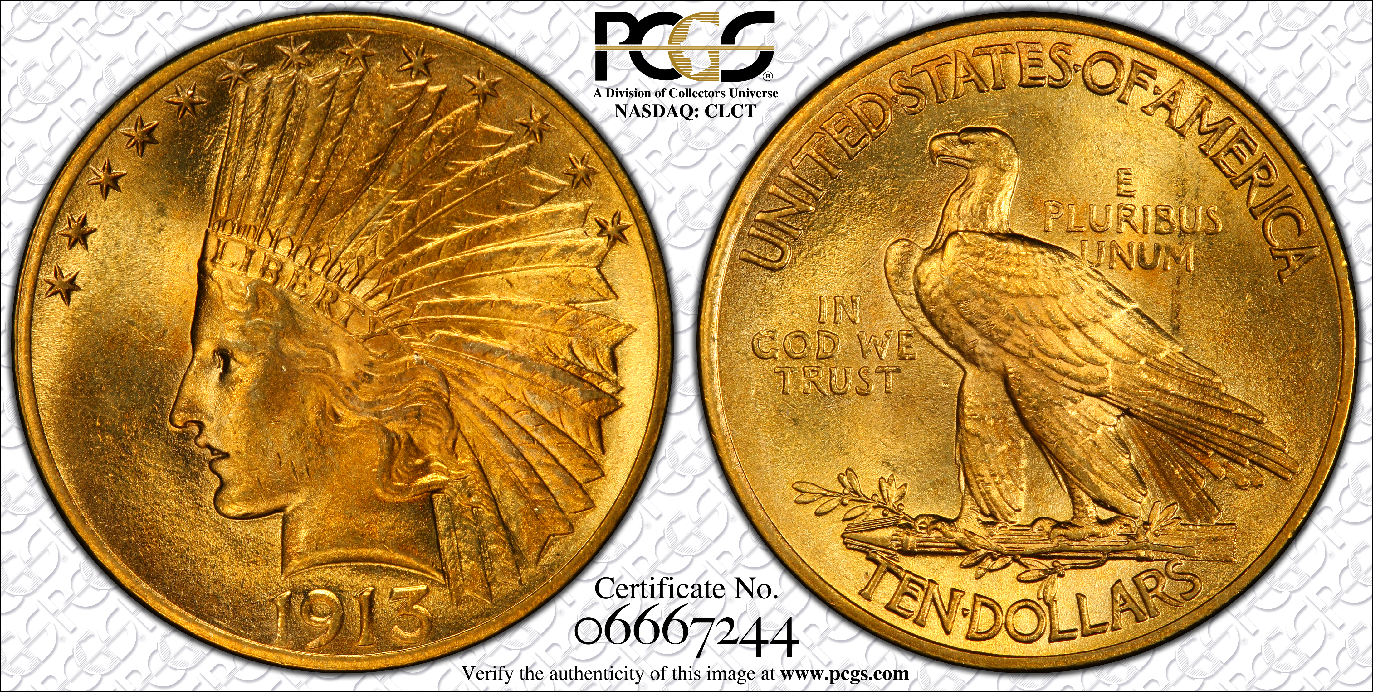 1913 $10 MS65 Certification #06667244, PCGS #8873
