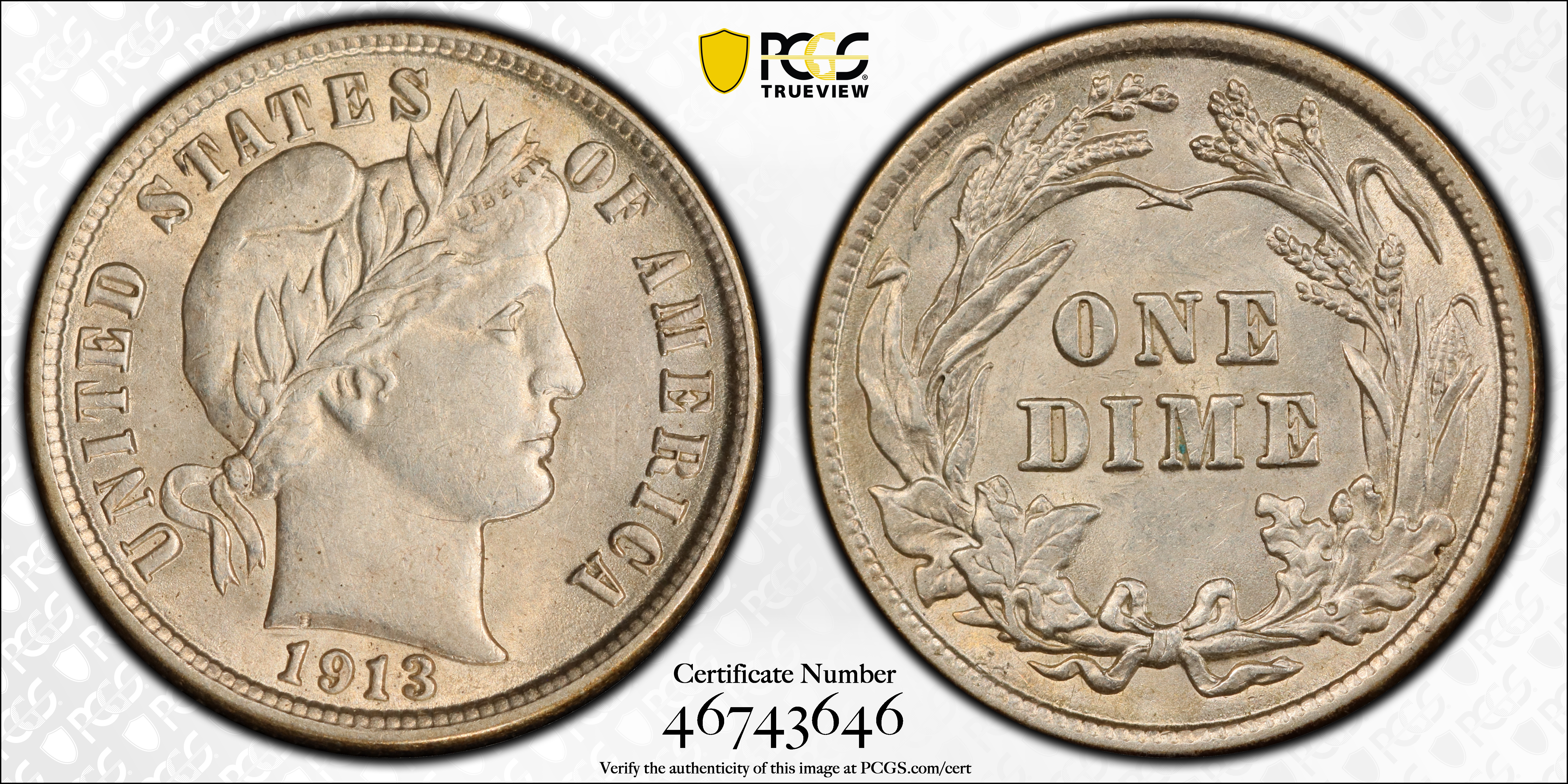 1913 10C AU58 Certification #46743646, PCGS #4863