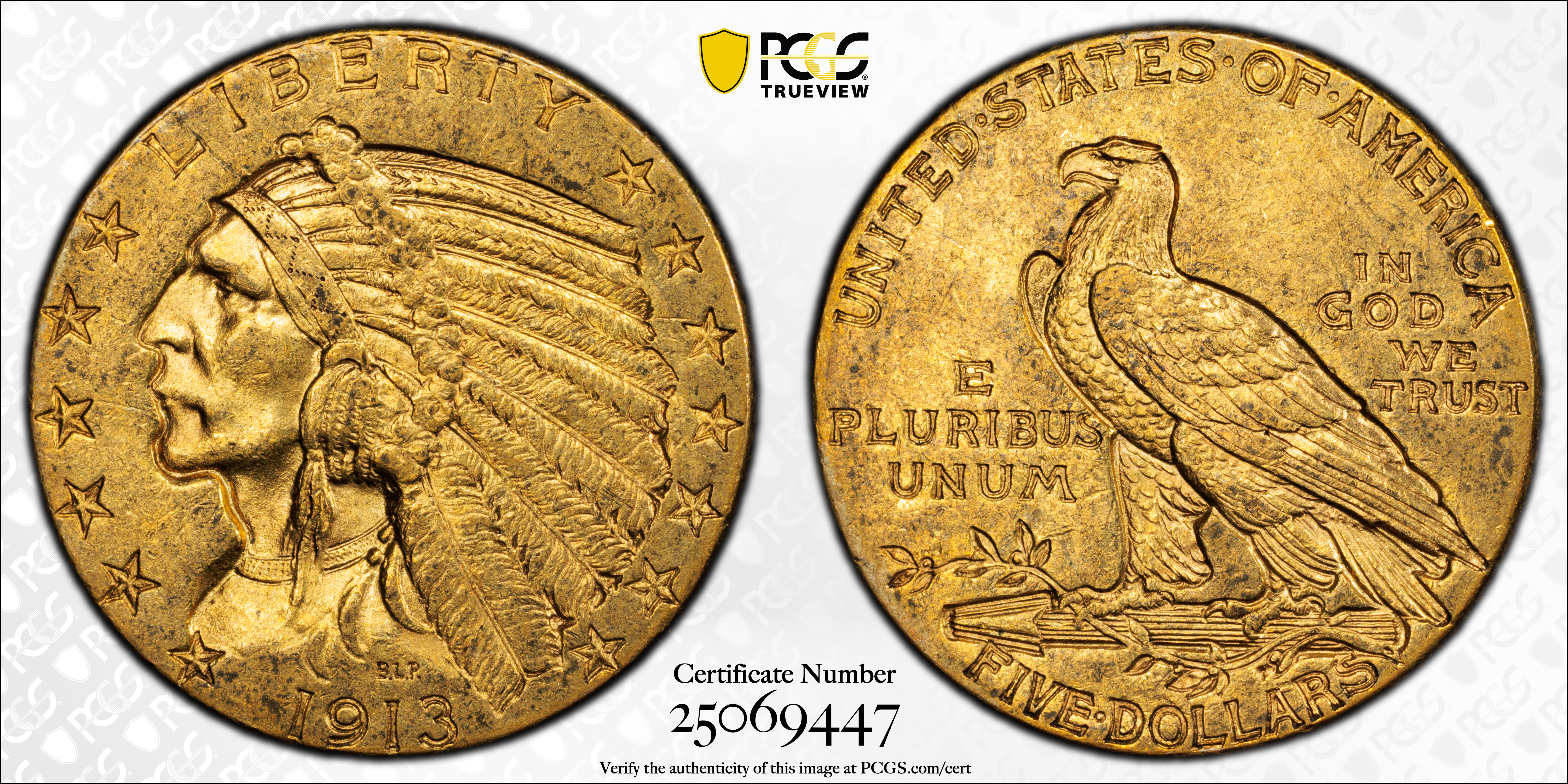 1913 $5 MS61 Certification #25069447, PCGS #8525