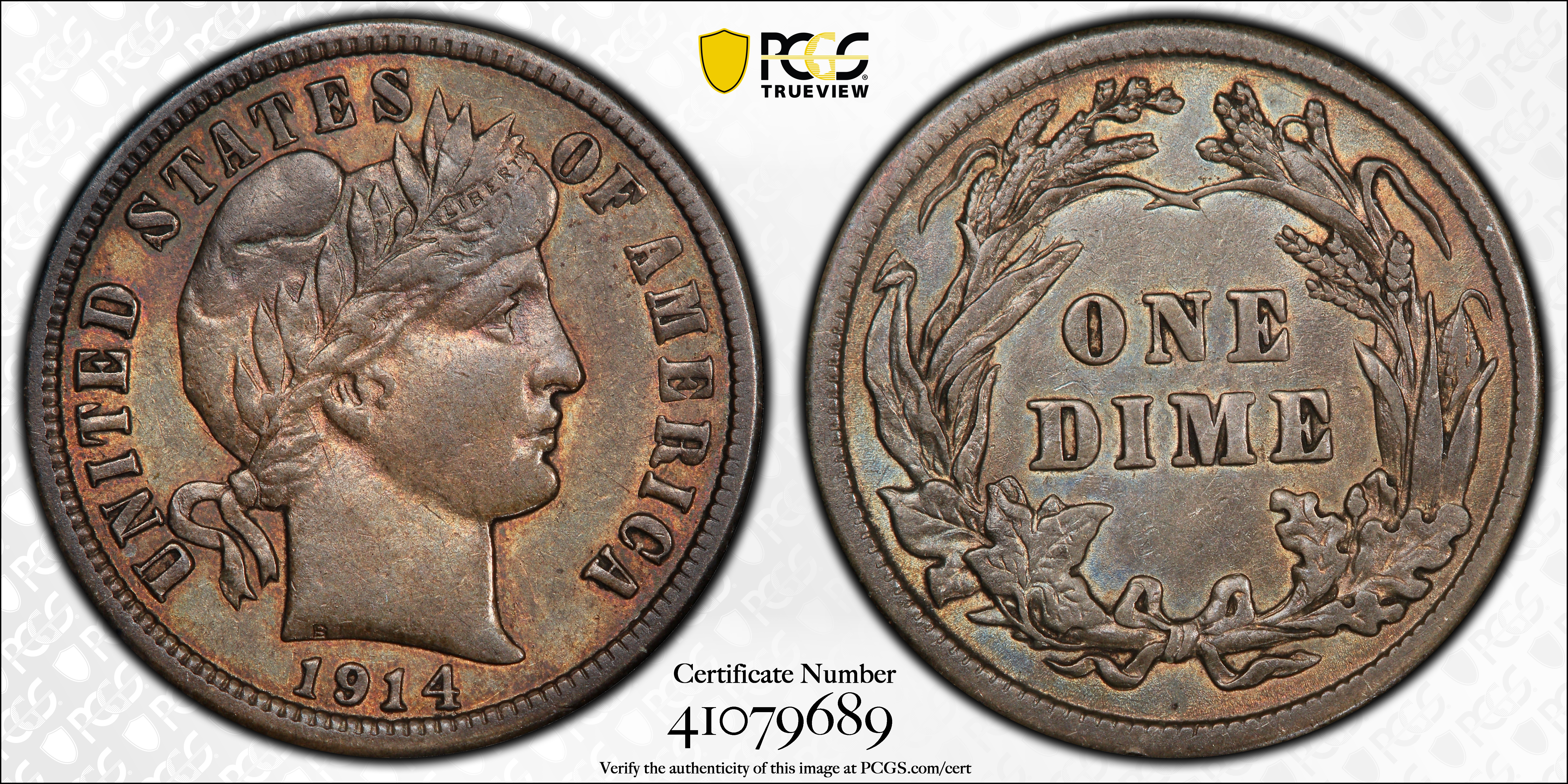 The 1914 Dime is one of the most common dates of the series, both in terms of total mintage and the number of coins that have been certified. Mint State examples are very common, with hundreds available in MS62 to MS65. Scores are available in MS66. Only in MS67 does the 1914 Dime become rare.