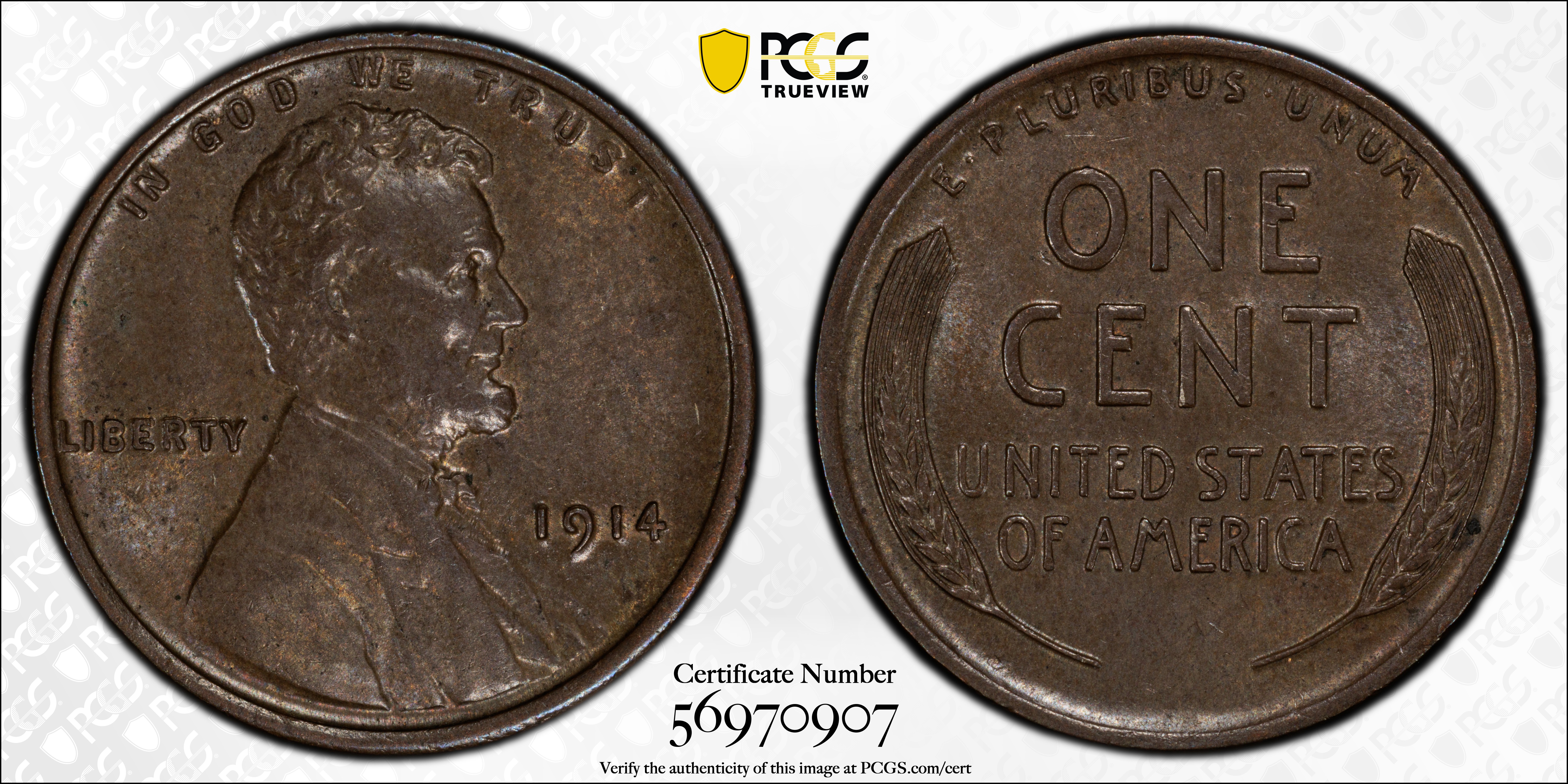 1914 1C, BN MS63BN Certification #56970907, PCGS #2468