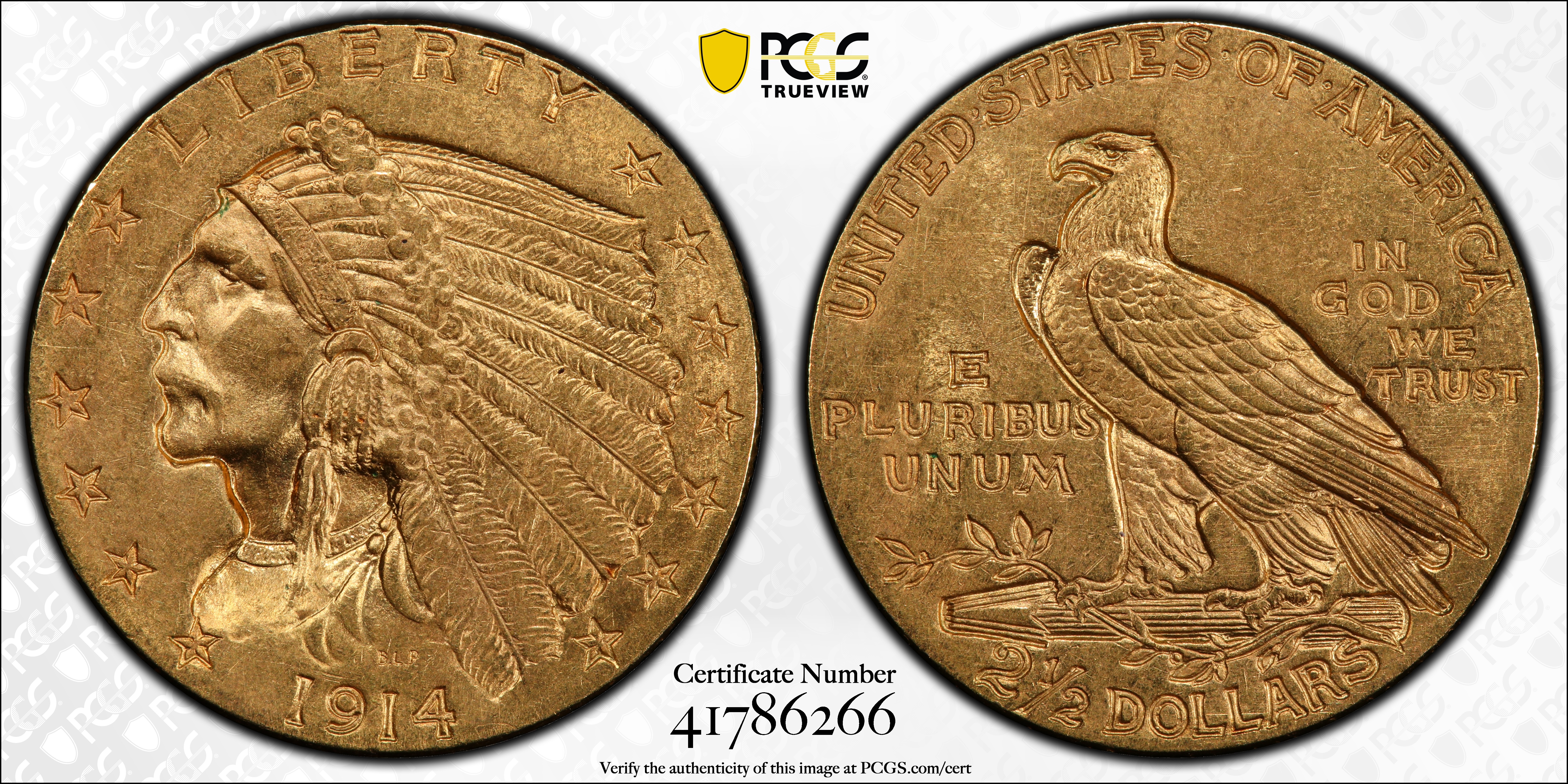 1914 $2.50 MS64 Certification #41786266, PCGS #7946