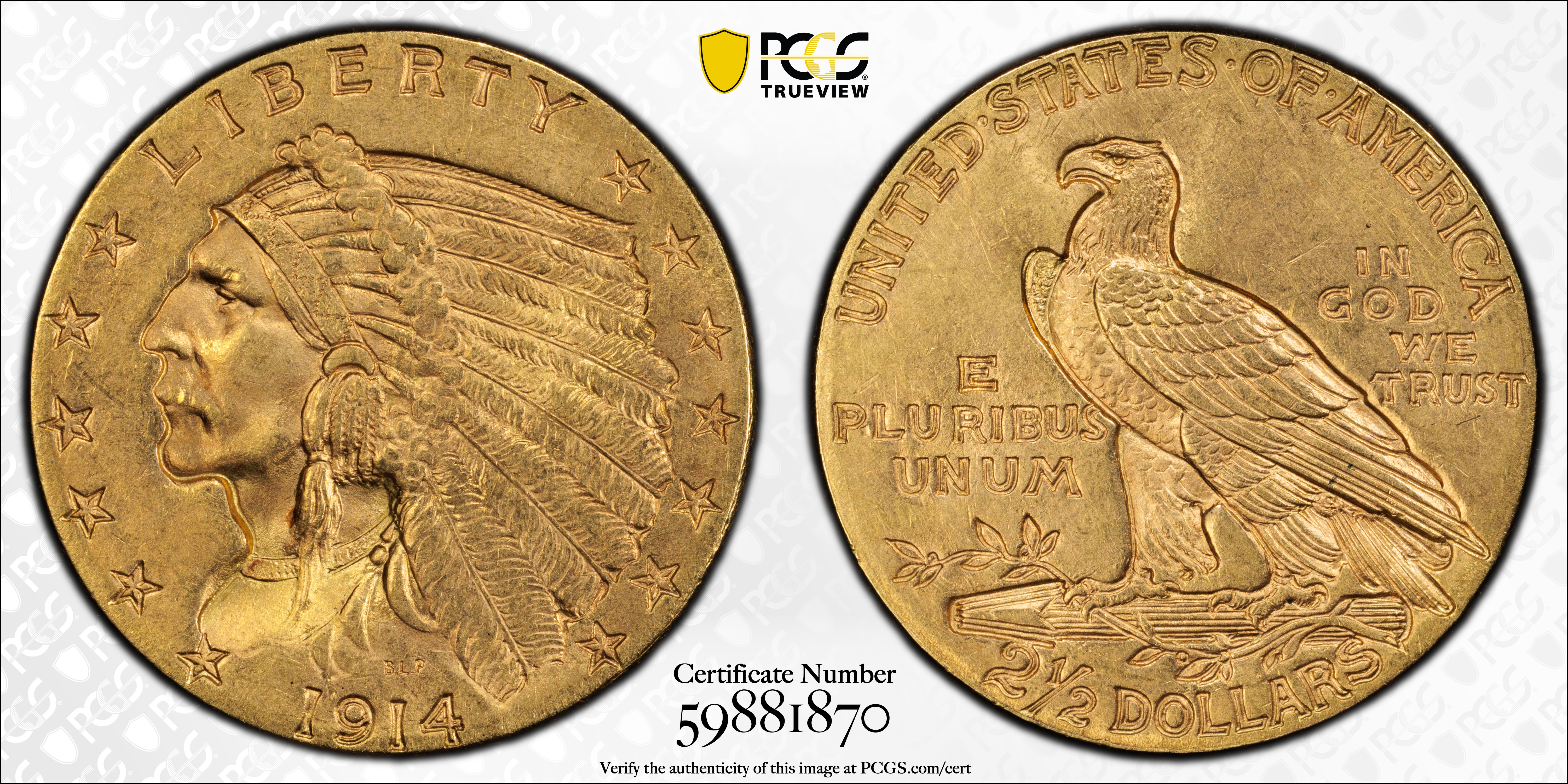 1914 $2.50 MS64 Certification #59881870, PCGS #7946