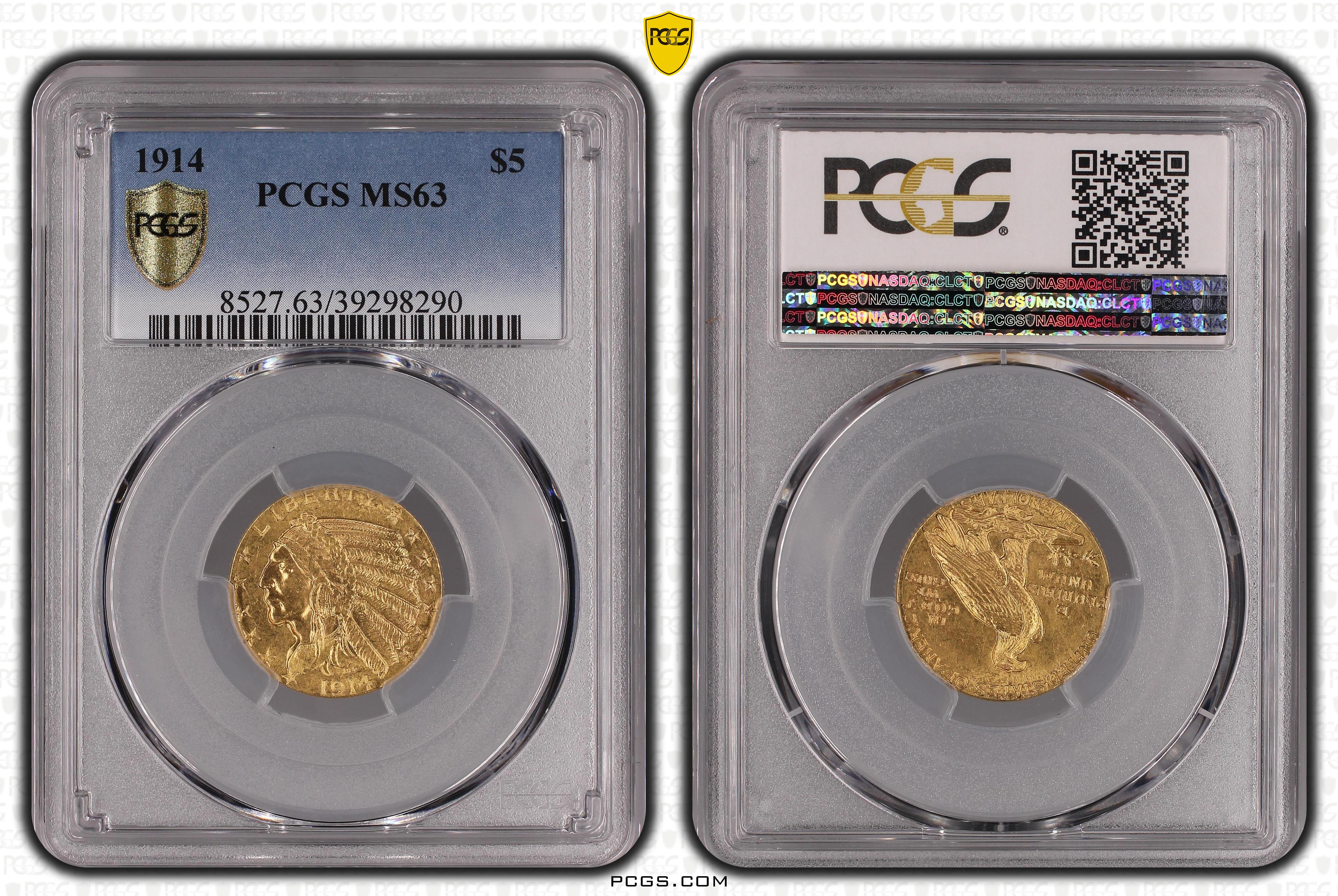 1914 $5 MS63 Certification #39298290, PCGS #8527