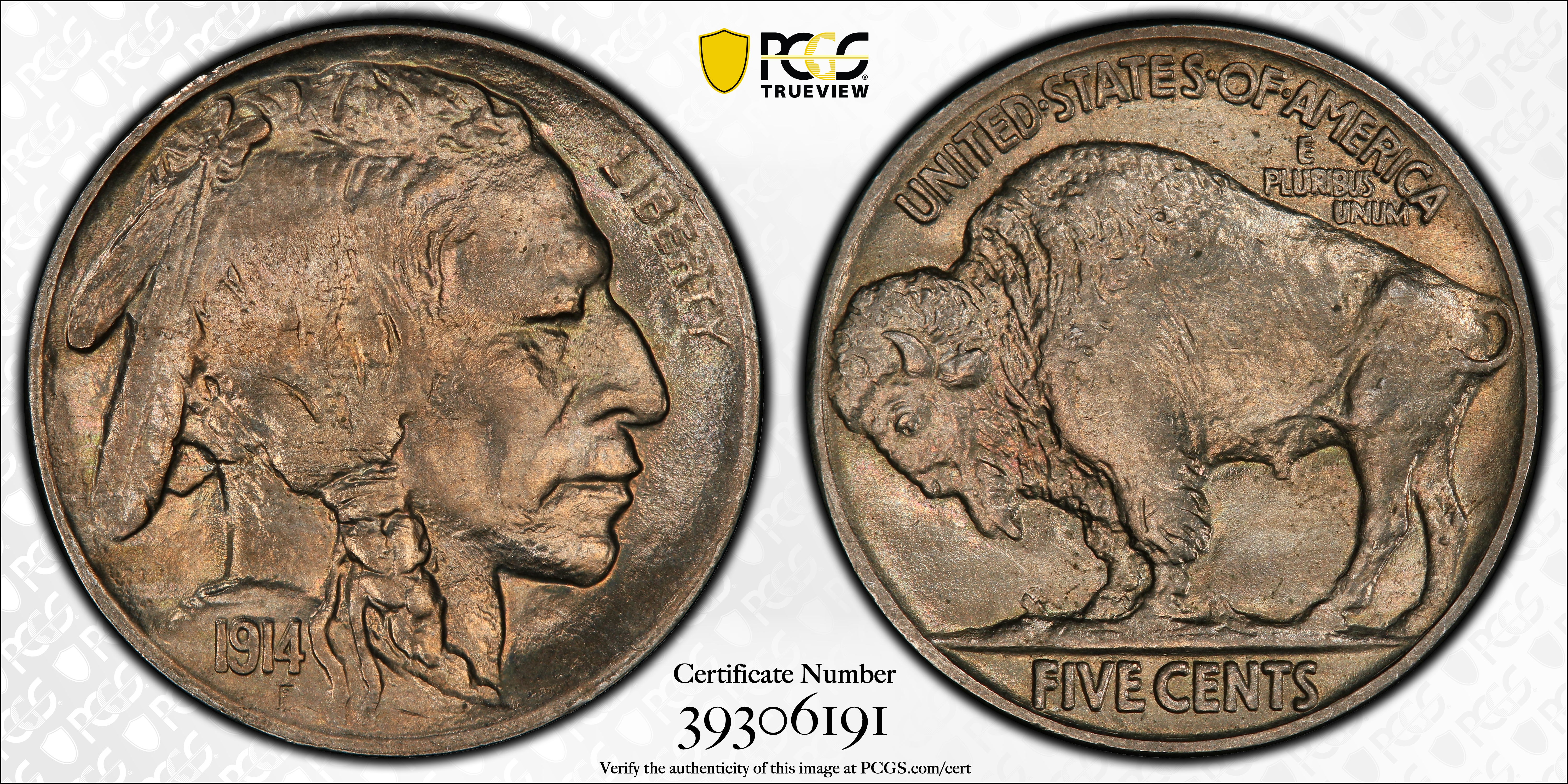 The 1914 Buffalo nickel is fairly available in all grades. In gem condition, it is rarer than the 1913 Type 2, 1915 and 1916. Strike is usually sharp, as is the case with most Philadelphia mint Buffalos. Luster on mint state examples is satiny and can be excellent.PCGS #