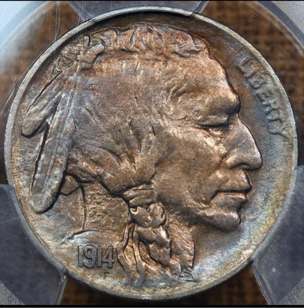 The 1914 Buffalo nickel is fairly available in all grades. In gem condition, it is rarer than the 1913 Type 2, 1915 and 1916. Strike is usually sharp, as is the case with most Philadelphia mint Buffalos. Luster on mint state examples is satiny and can be excellent.PCGS #