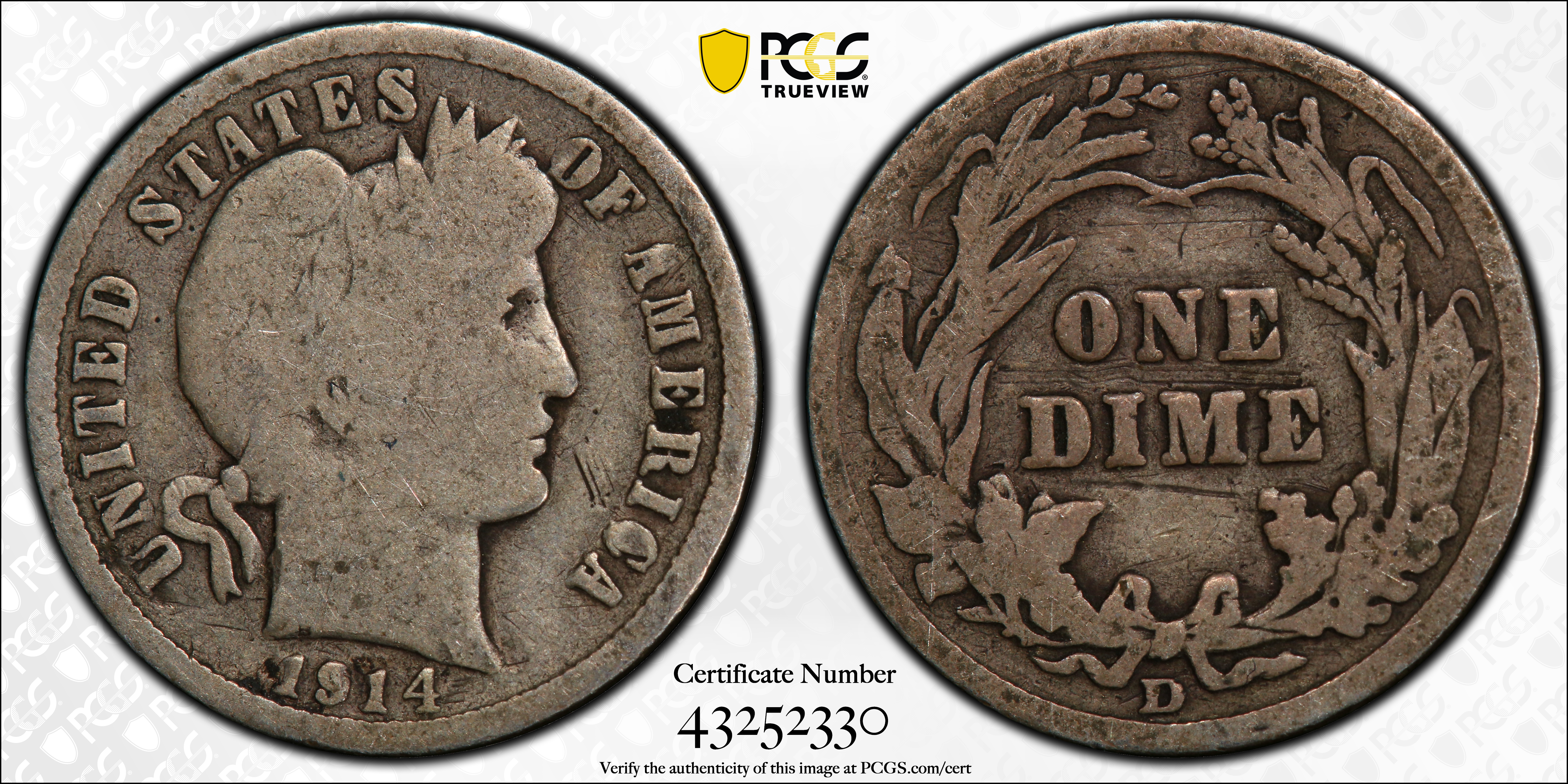 1914-D 10C G4 Certification #43252330, PCGS #4866