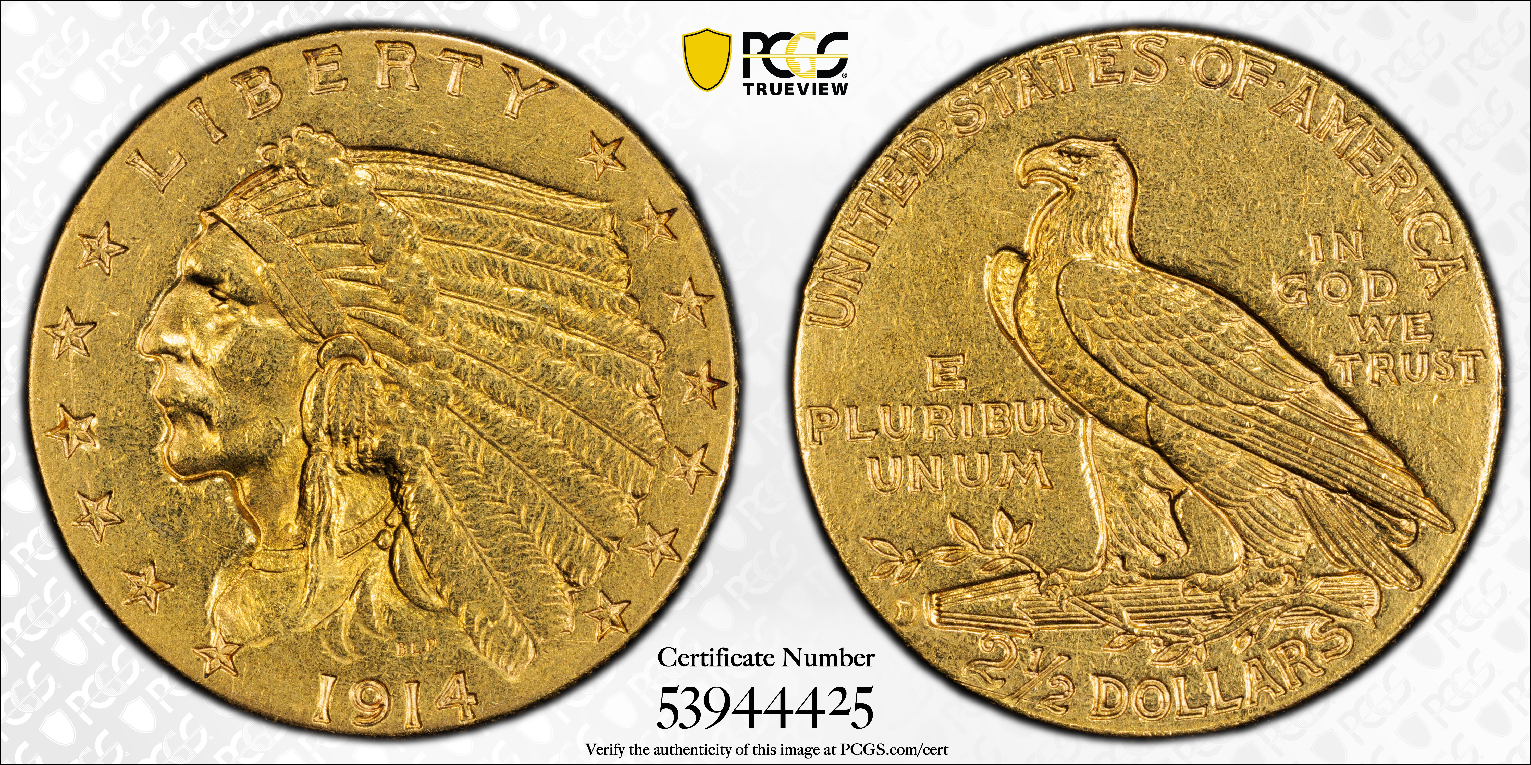 1914-D $2.50 N1 Certification #53944425, PCGS #7947