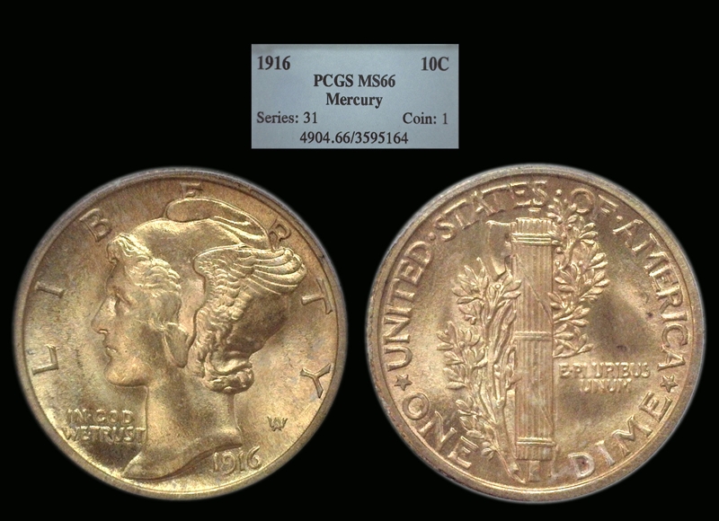 1916 10C Mercury MS66 Certification #03595164, PCGS #4904