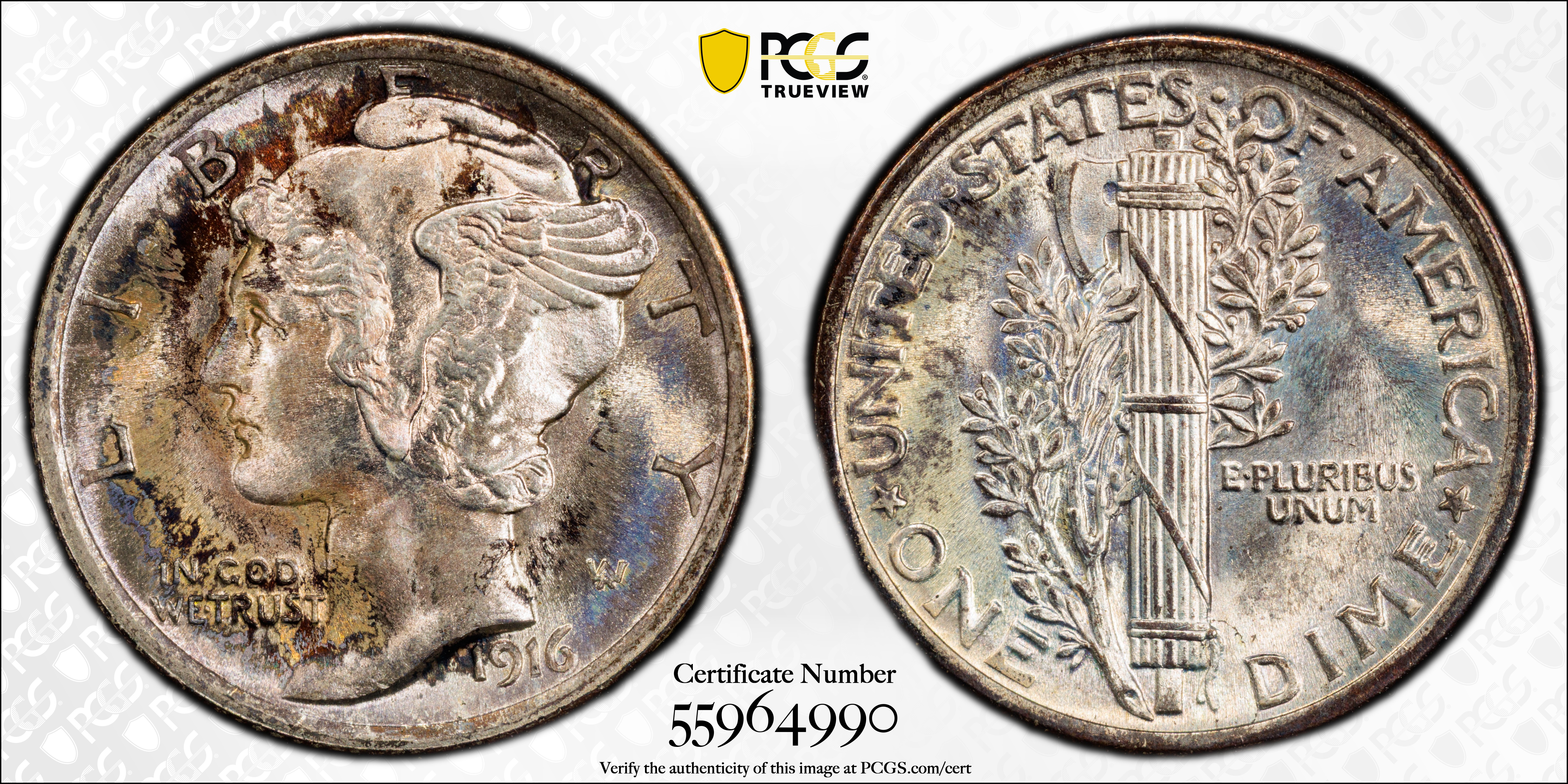 1916 10C Mercury, FB MS67FB Certification #55964990, PCGS #4905