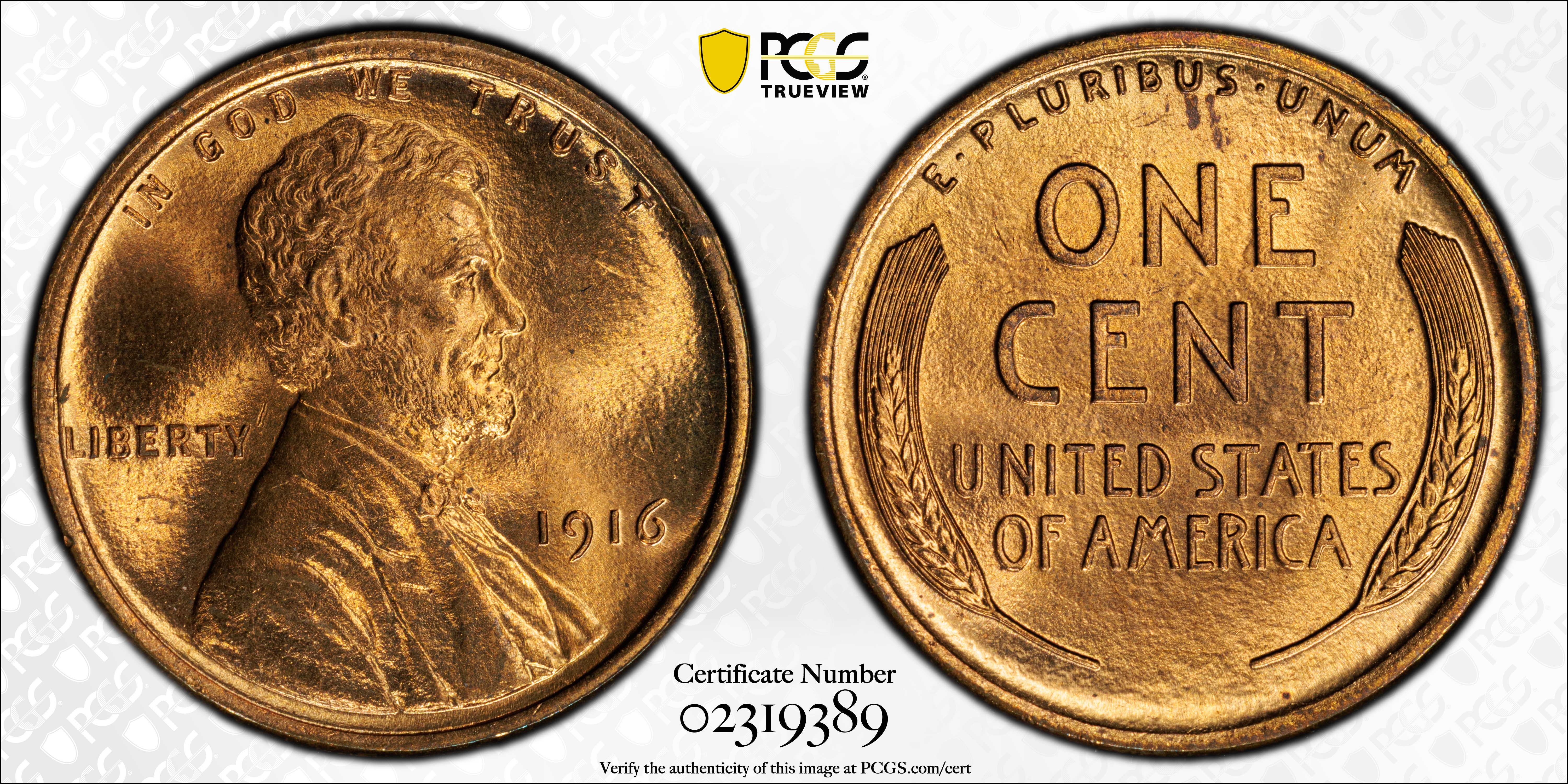 1916 1C, RD MS67RD Certification #02319389, PCGS #2488