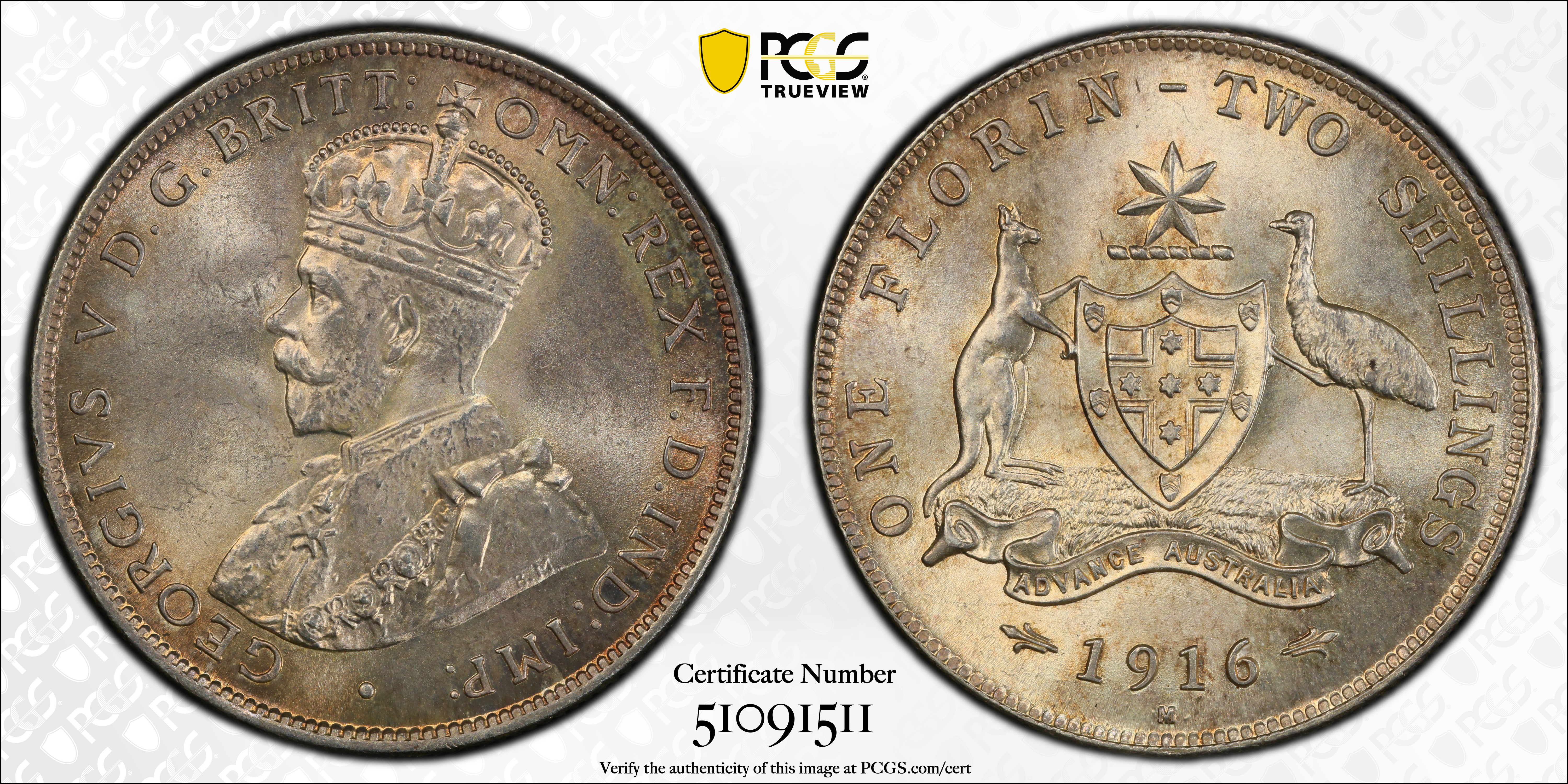 1916-M Florin KM-27 Ag MS64 Certification #51091511, PCGS #17896