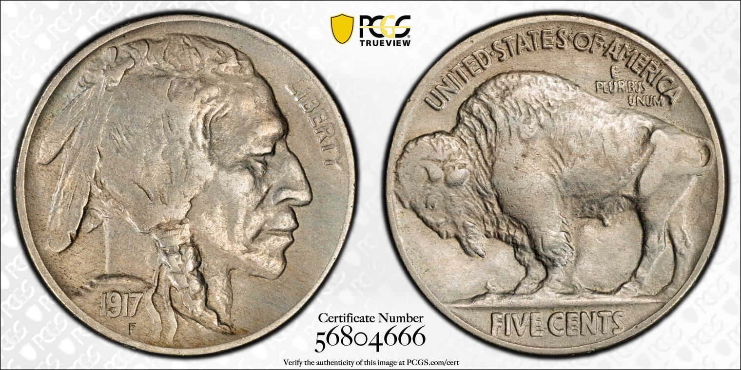 In circulated grades, the 1917 is about equal in rarity to the 1915, 1916, and 1918. In Gem condition, the 1917 is about equal in rarity to the 1914, and it is rarer than the 1915, 1916, and 1919, but not as rare as the 1918. As a group, the 1914 to 1919 Philadelphia Mint issues are not quite as rare in Gem condition as the 1920 to 1924 issues, then beginning in 1925 many more examples were saved (thank you, Wayte Raymond!) The 1917, like most Philadelphia Buffalo nickels, is usually very well struck. Luster can be somewhat satiny to somewhat frosty.