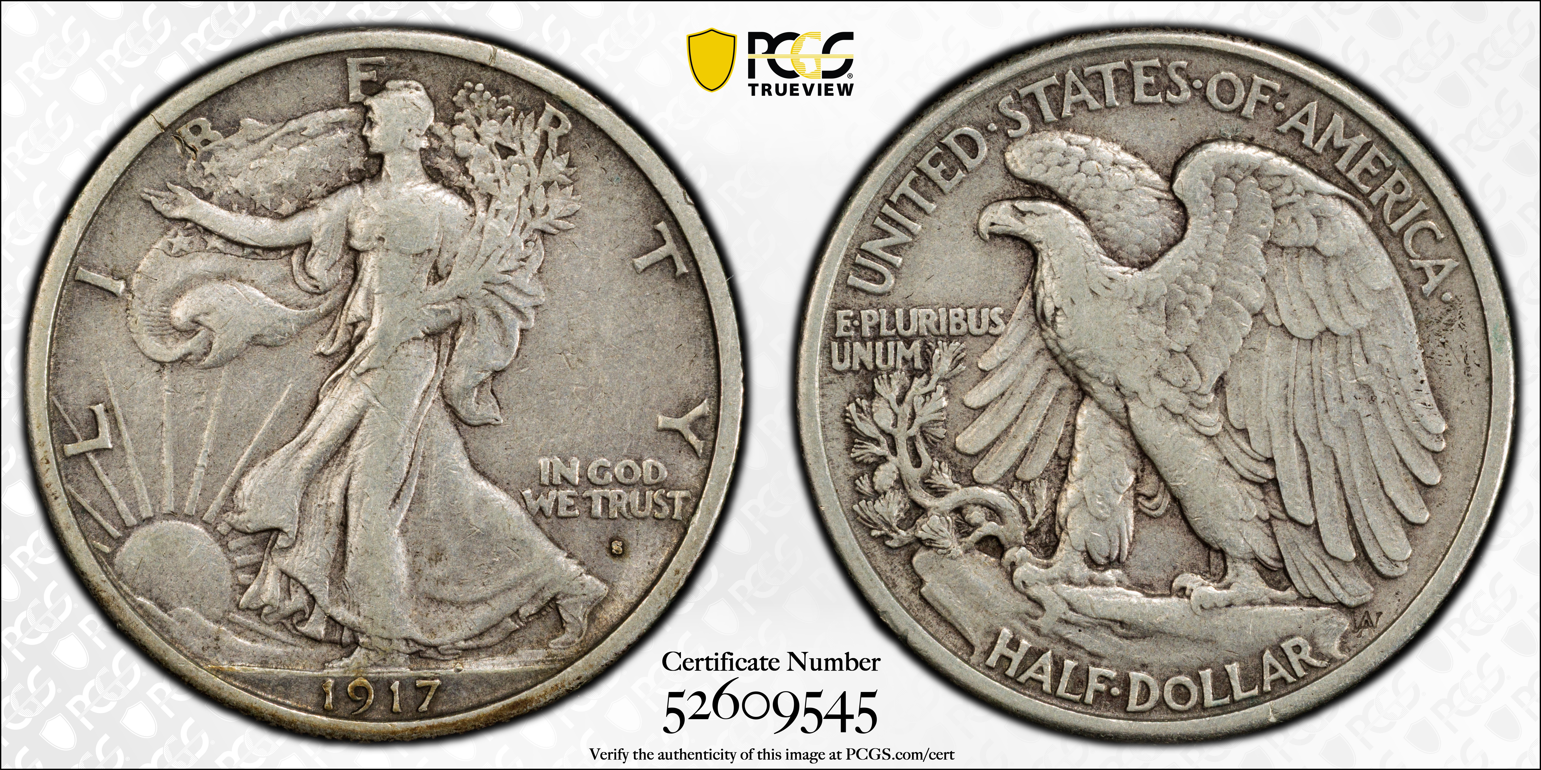 1917-S 50C Obverse XF45 Certification #52609545, PCGS #6572