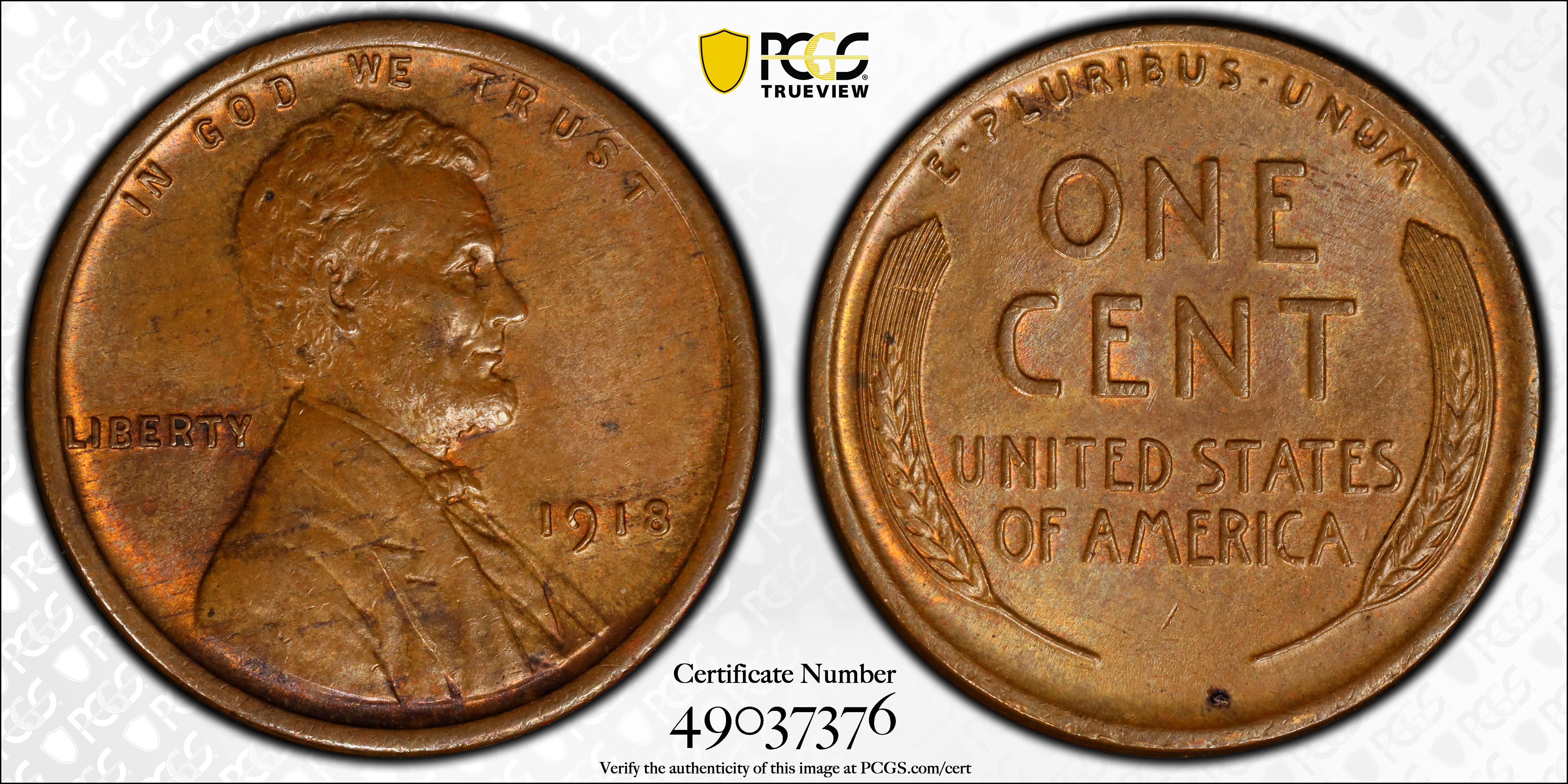 1918 1C, BN MS63BN Certification #49037376, PCGS #2504