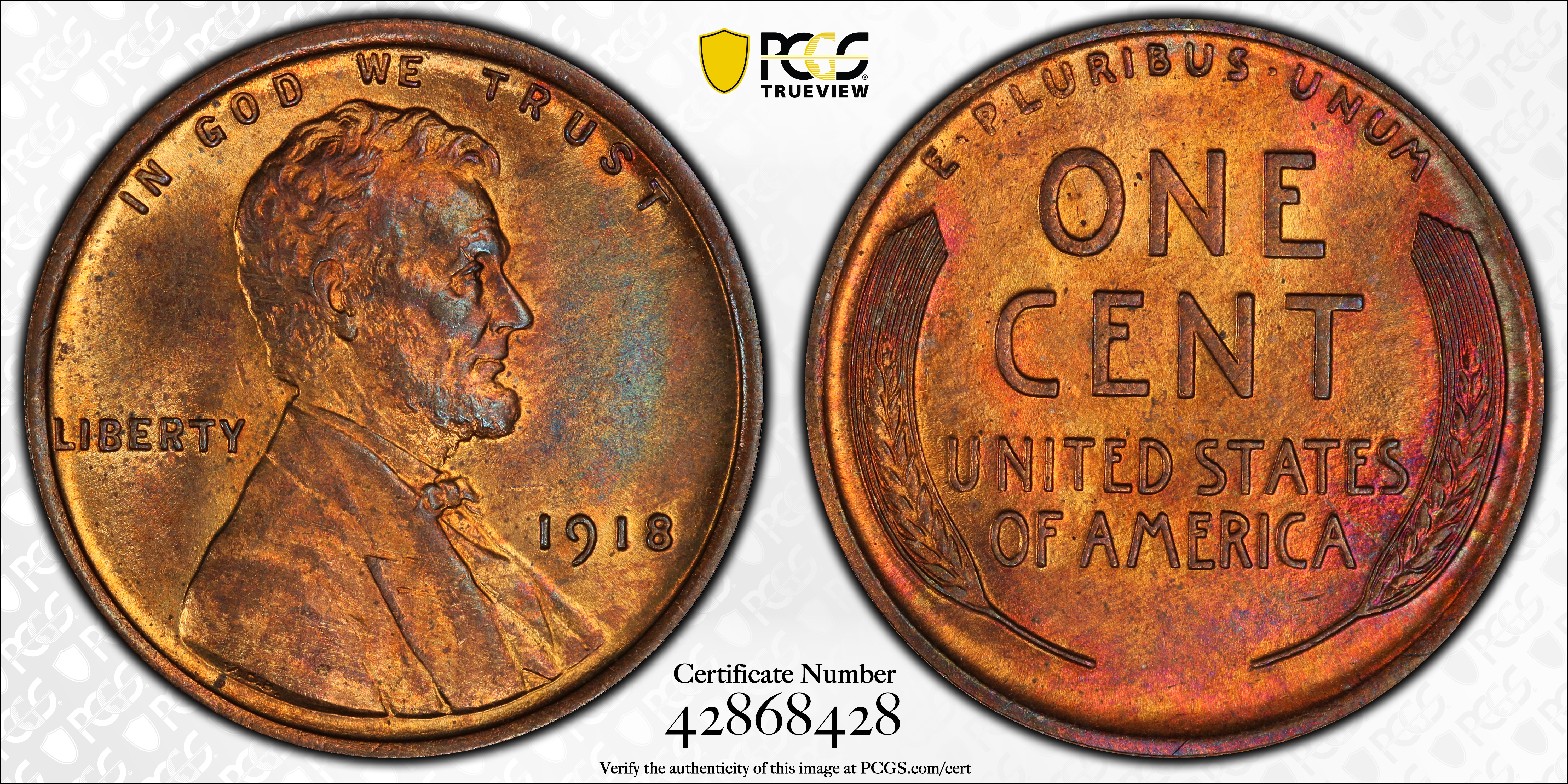 1918 1C, RB MS64RB Certification #42868428, PCGS #2505