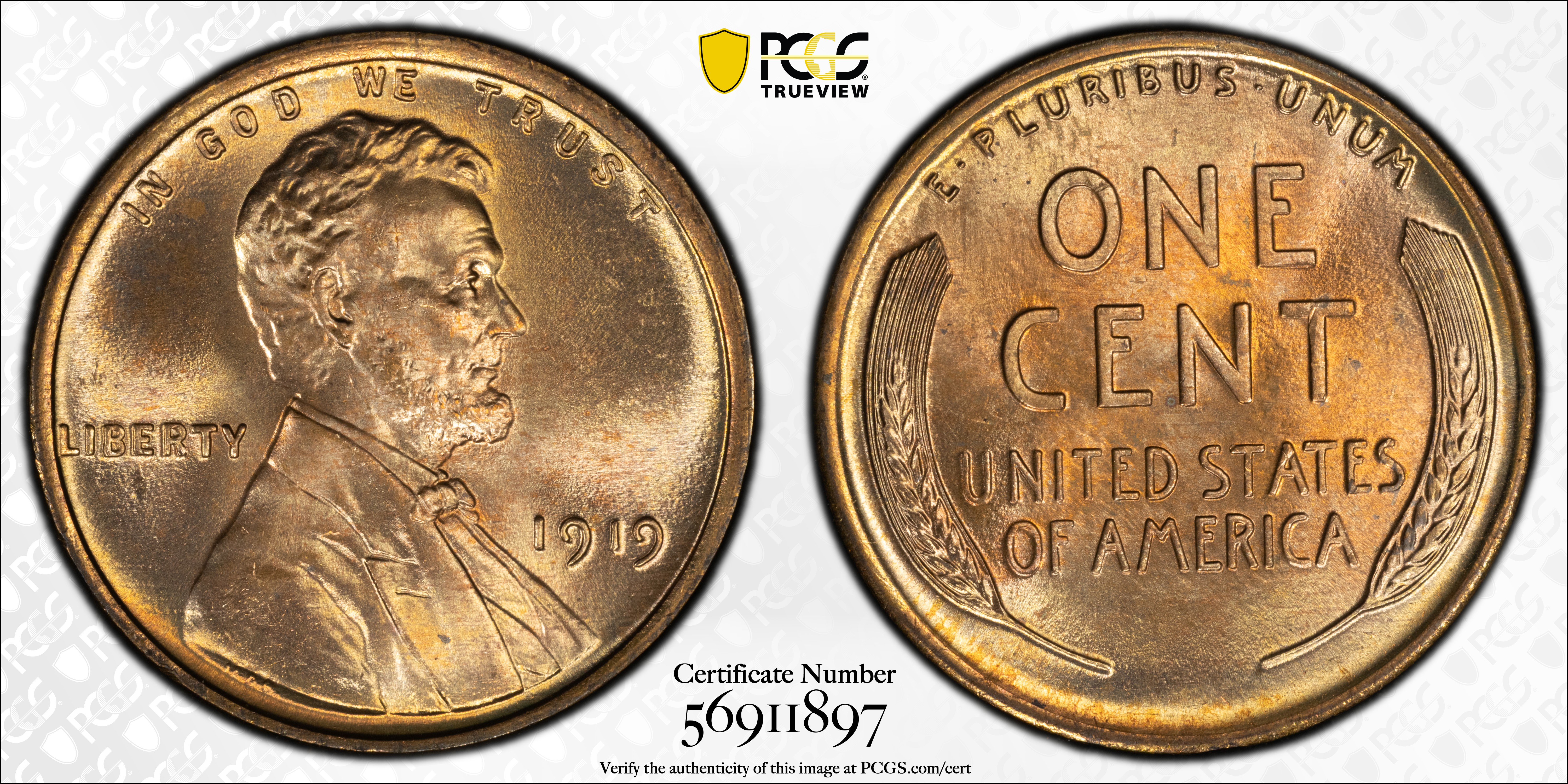 1919 1C, RD MS66RD Certification #56911897, PCGS #2515