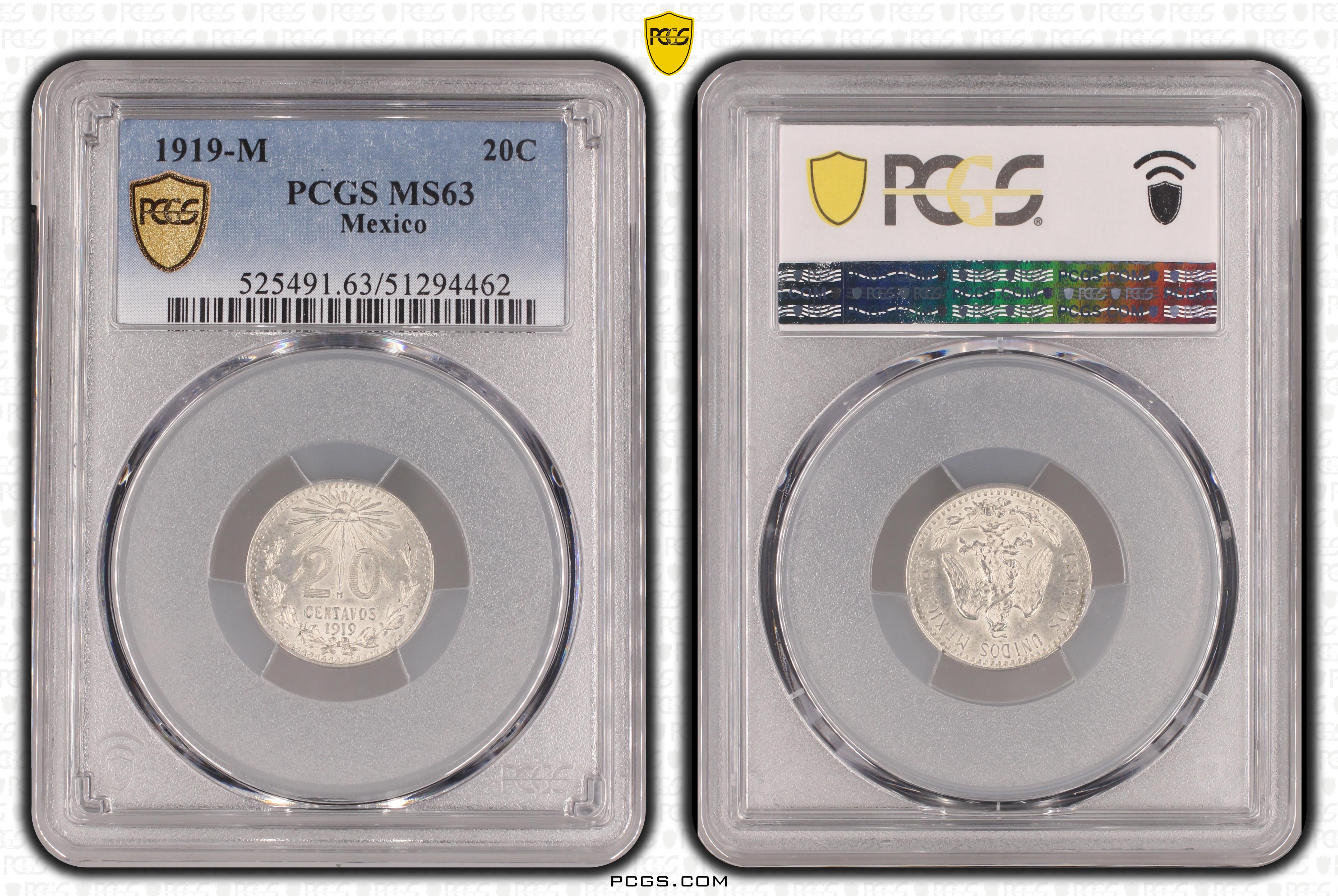 1919-M 20C MS63 Certification #51294462, PCGS #525491