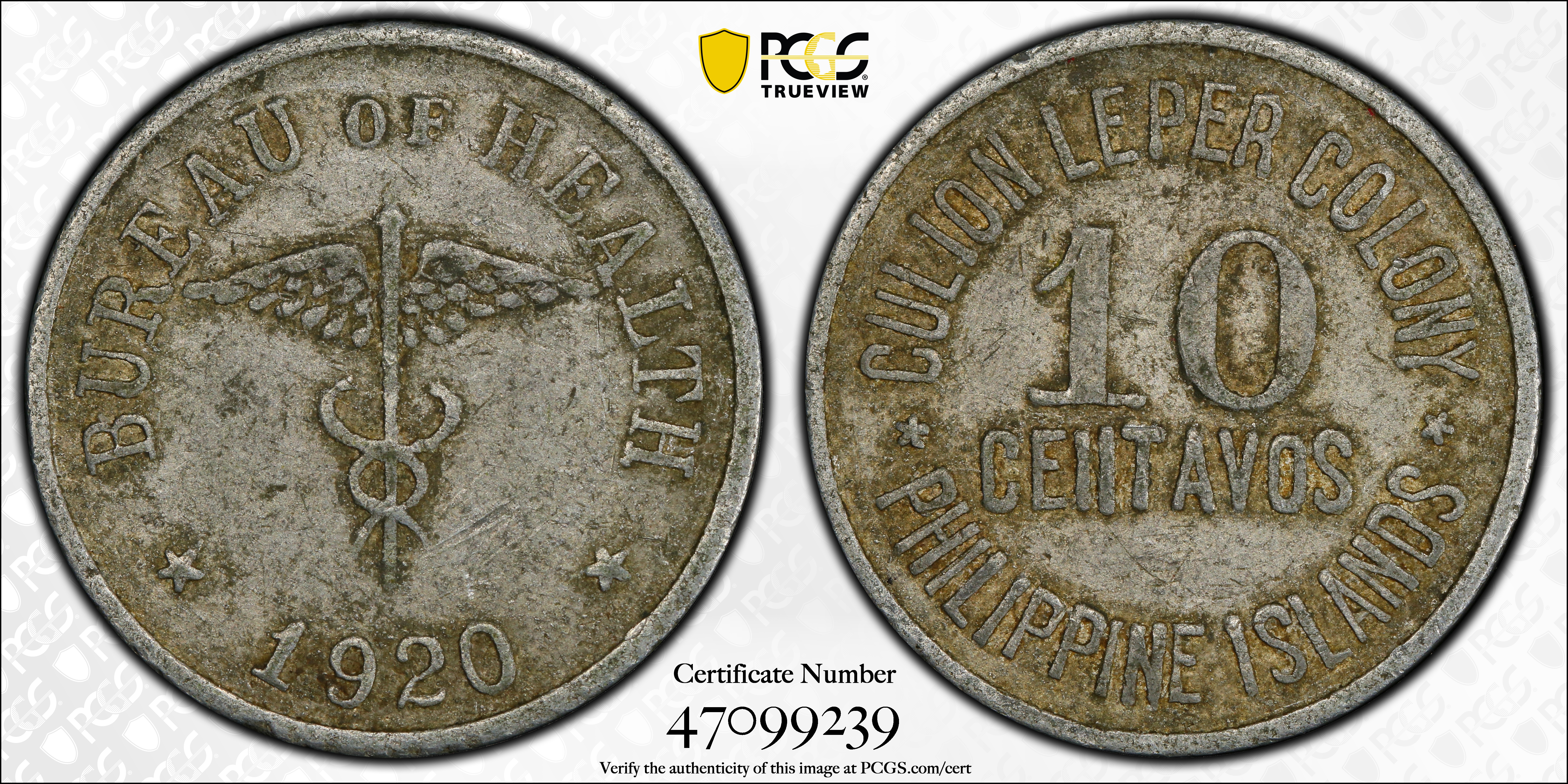 1920 10C VF30 Certification #47099239, PCGS #988362