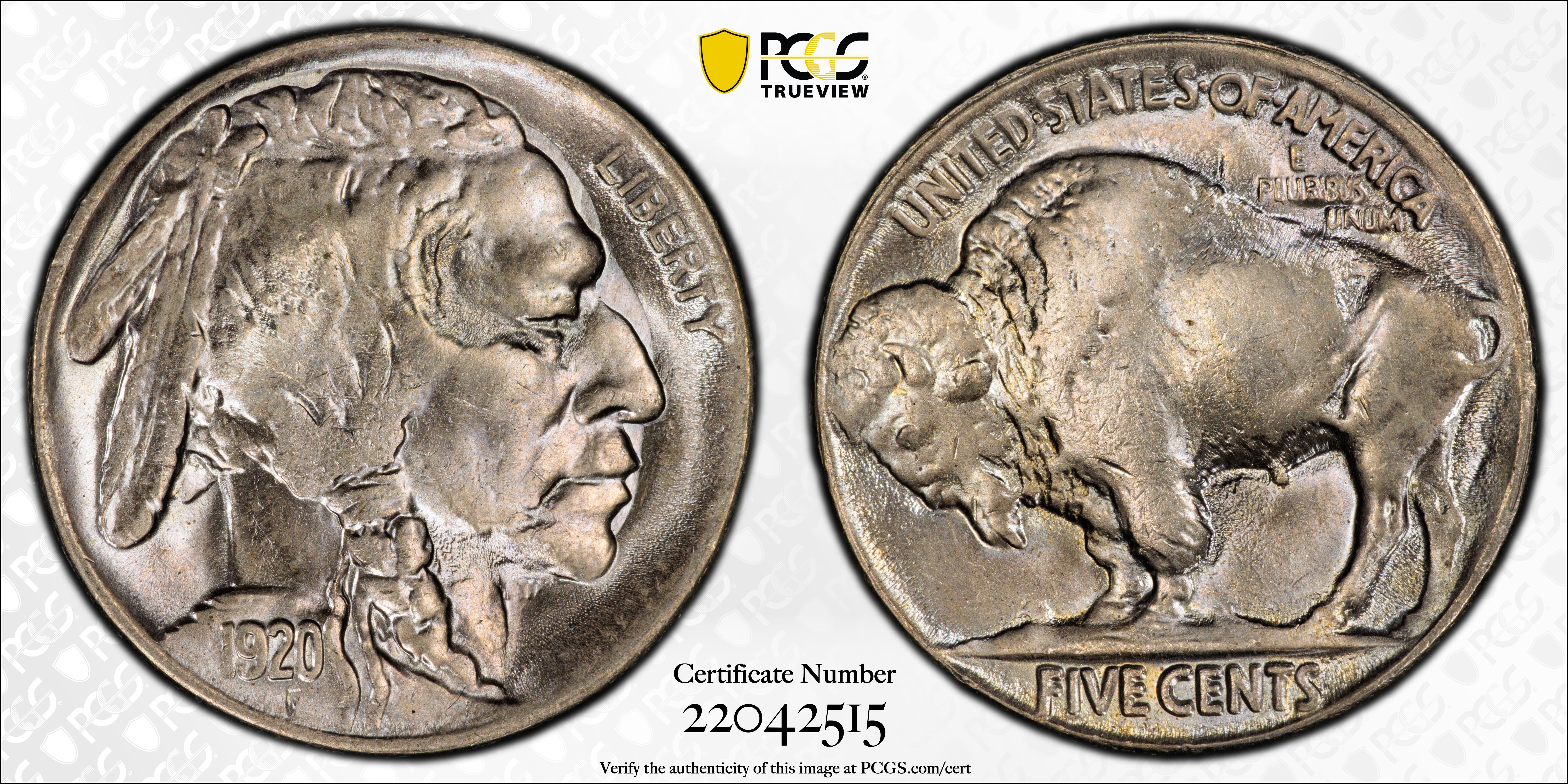 In circulated grades, the 1920 is about as rare as the other 1914 to 1924 era Philadelphia Mint Buffalo nickels. In uncirculated and Gem uncirculated condition, it is rarer than the 1914-1919 P Mints, with the exception of the rarer 1918. It is slightly rarer than the 1921 in Gem condition. Most 1920s are fairly well struck. Luster is more frosty than satiny.