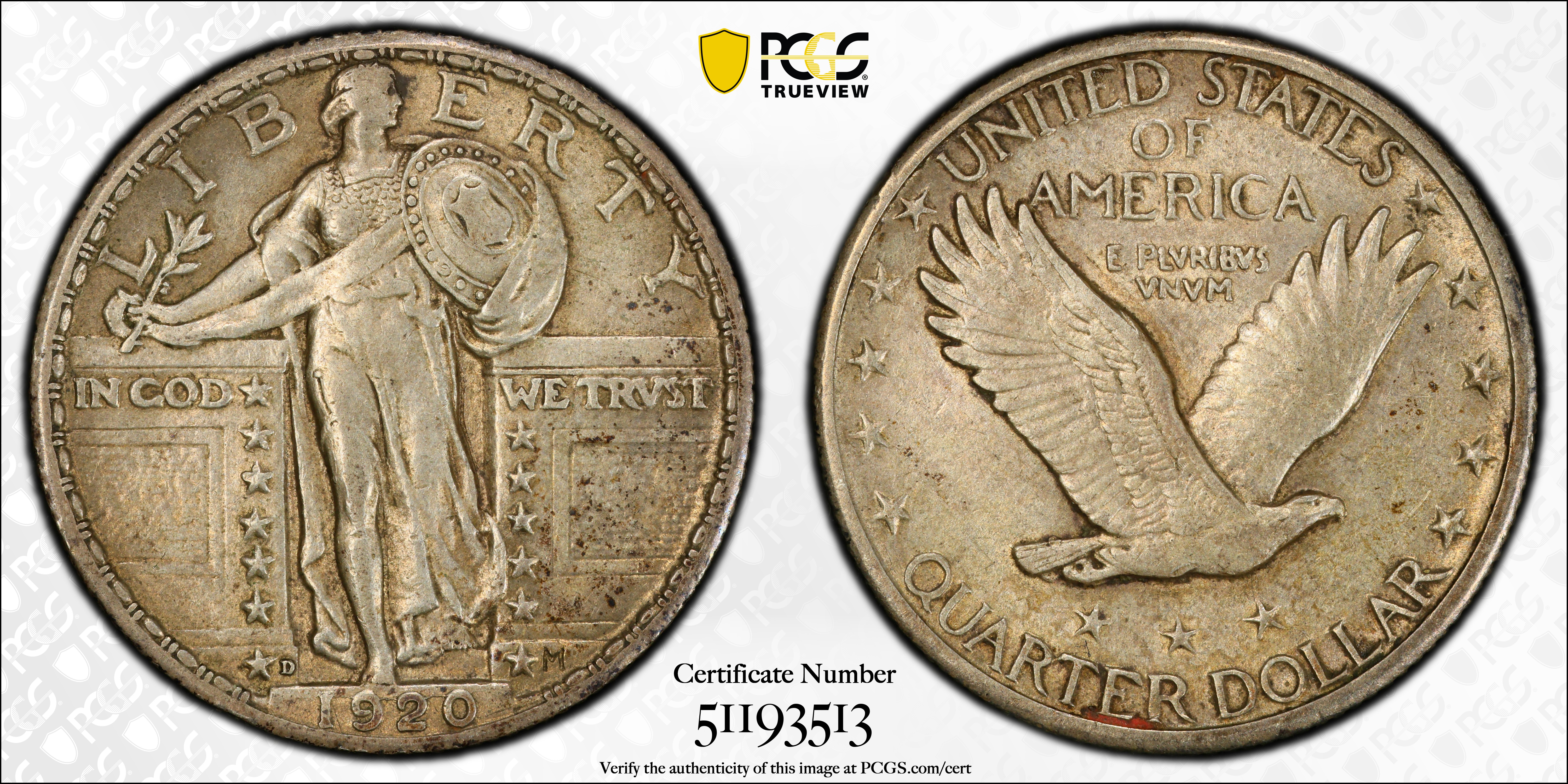 1920-D 25C AU53 Certification #51193513, PCGS #5736