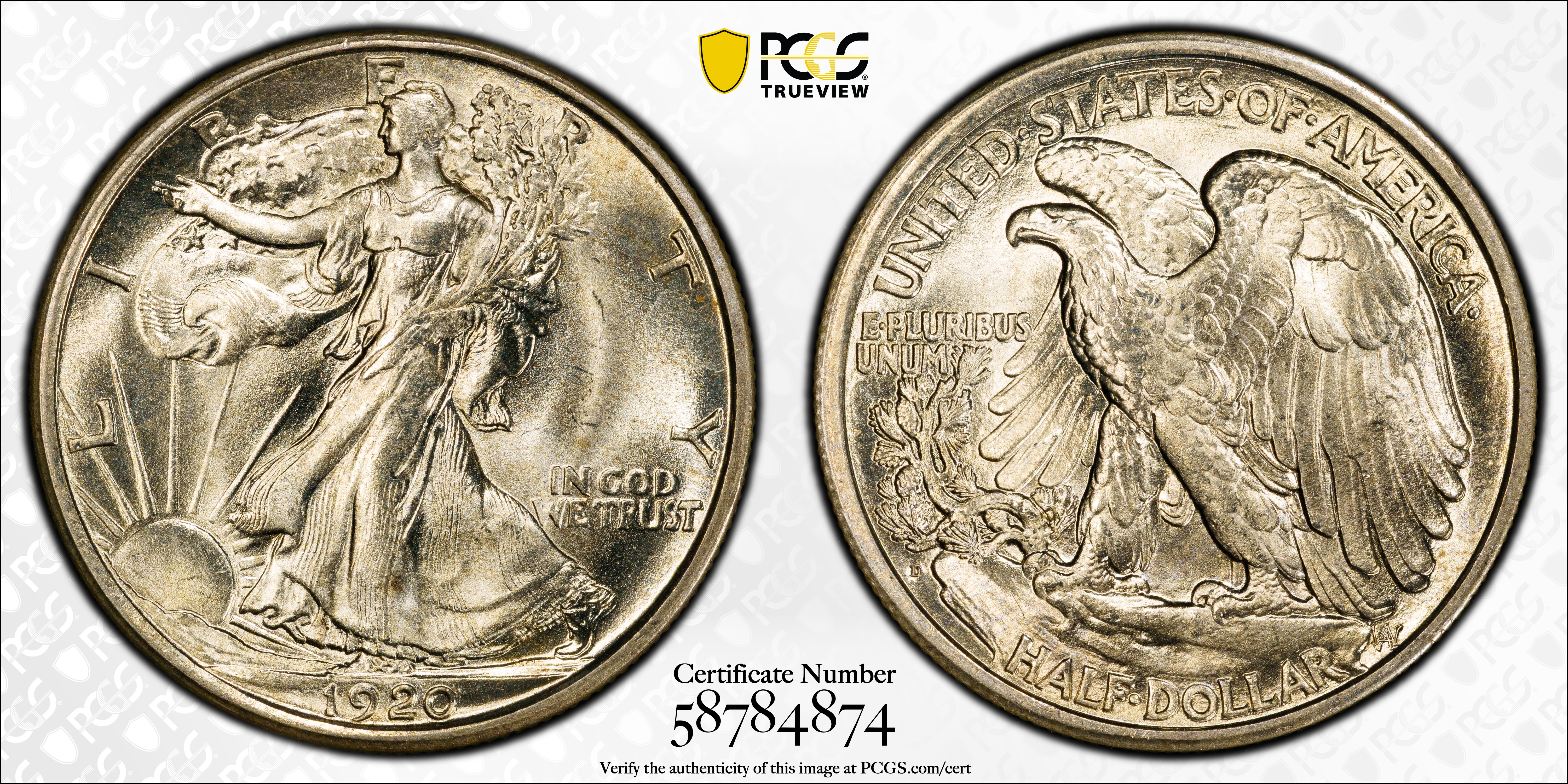 1920-D 50C MS66 Certification #58784874, PCGS #6581